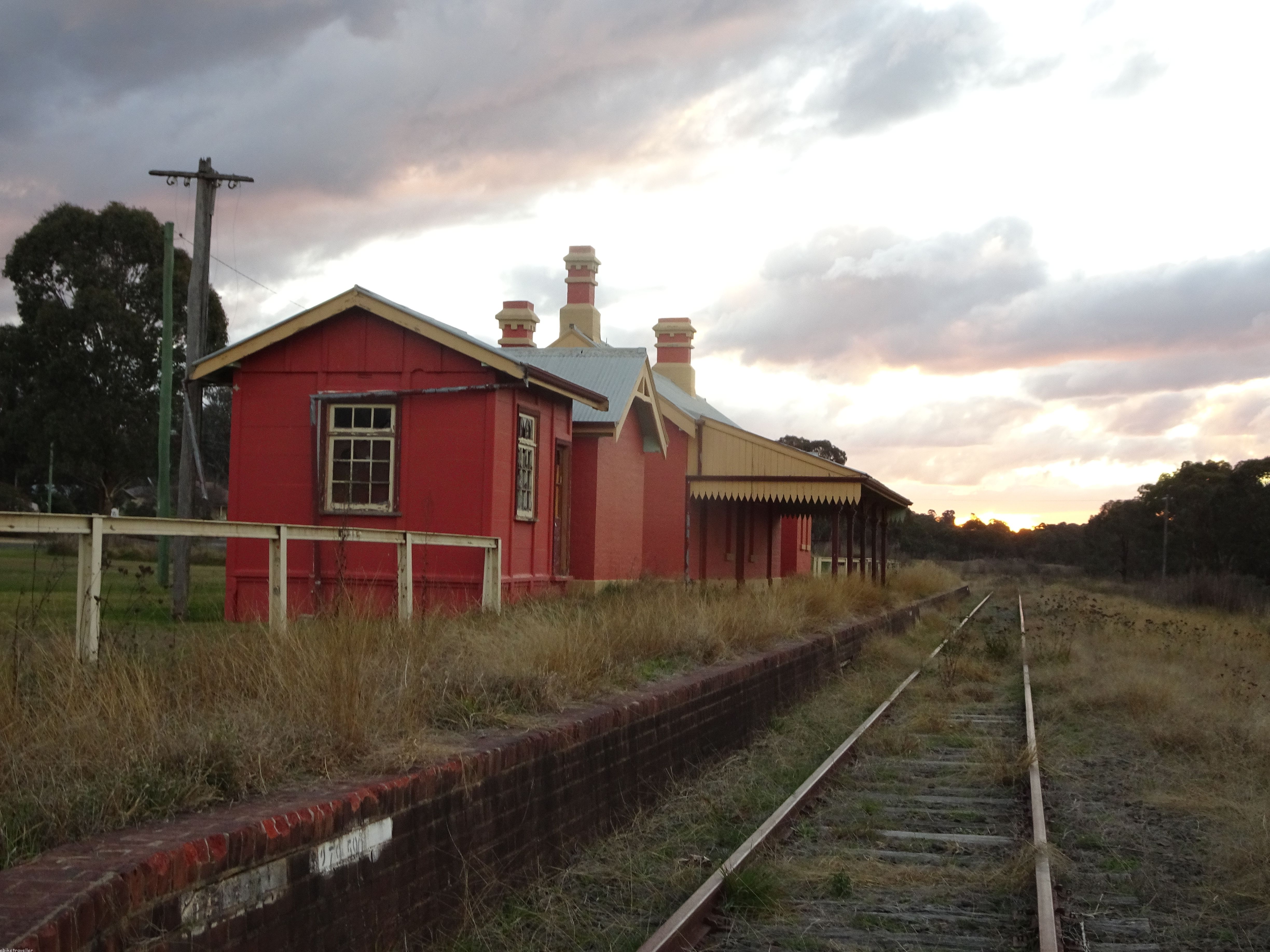 But first I dithered about for a couple of hours buying a warm woollen base clothing layer (that is, a new pair of Icebreaker Long Johns to replace the ones I lost on my previous trip), and so missed the 12.18 train to Lithgow by 5 minutes. The next train wasn’t due to leave until 2.18; however, there was a 1.18 train that went as far as Mount Victoria and I thought that it might just about do, and so settled on that one instead. Getting the bike plus trailer on and off the train and platform and finding somewhere acceptable to lash it down on the train were no easy matters, but the rail staff were helpful and my fellow passengers were quite accepting of the inconvenience.