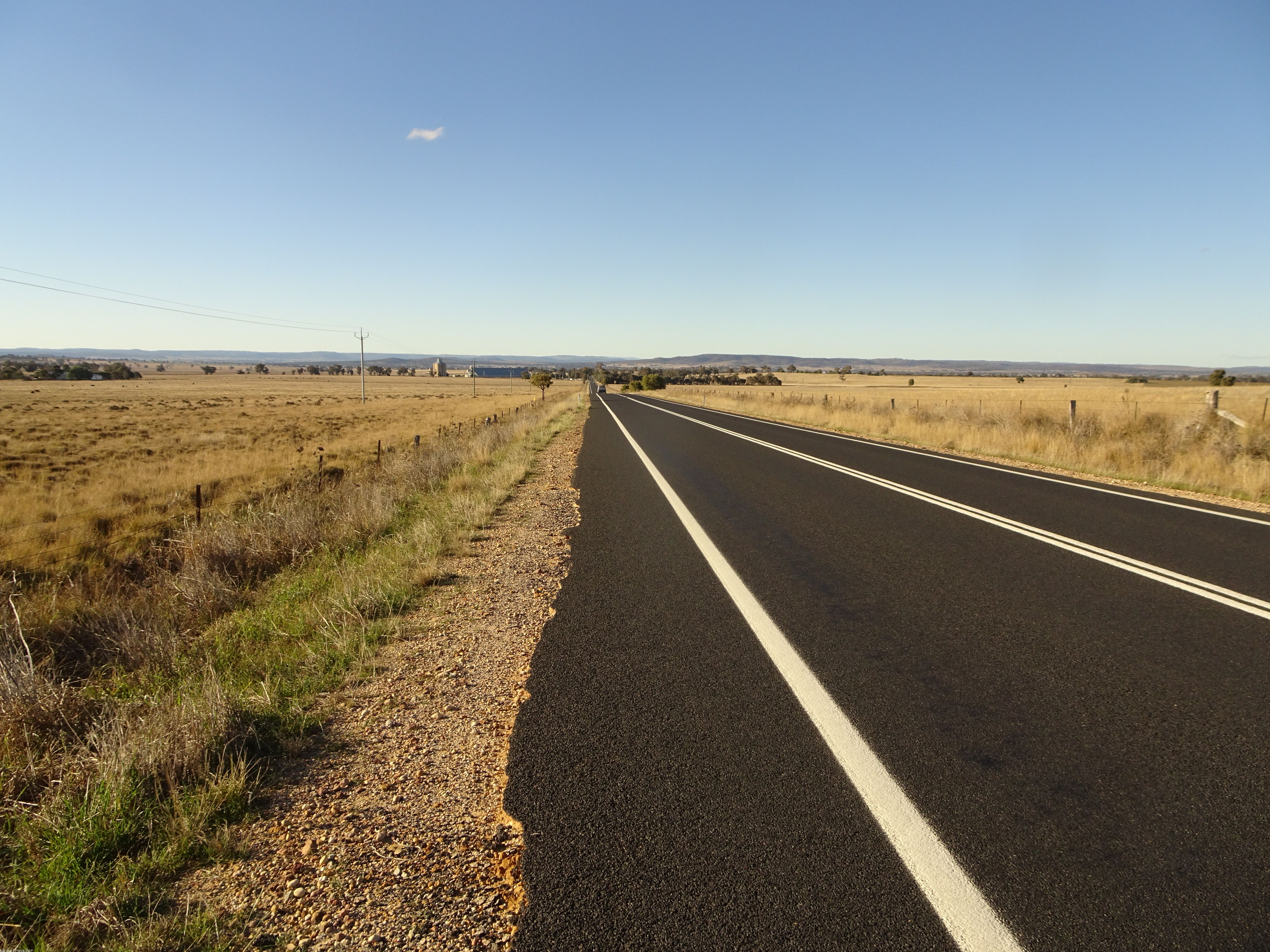 But within 10 km the cold was all but a faded memory, and a pleasant 15-18°C was making for an enjoyable ride – that and the fact I’d finally left the Blue Mountains/ Great Dividing Range behind me by now and the countryside was opening out nice and flat.