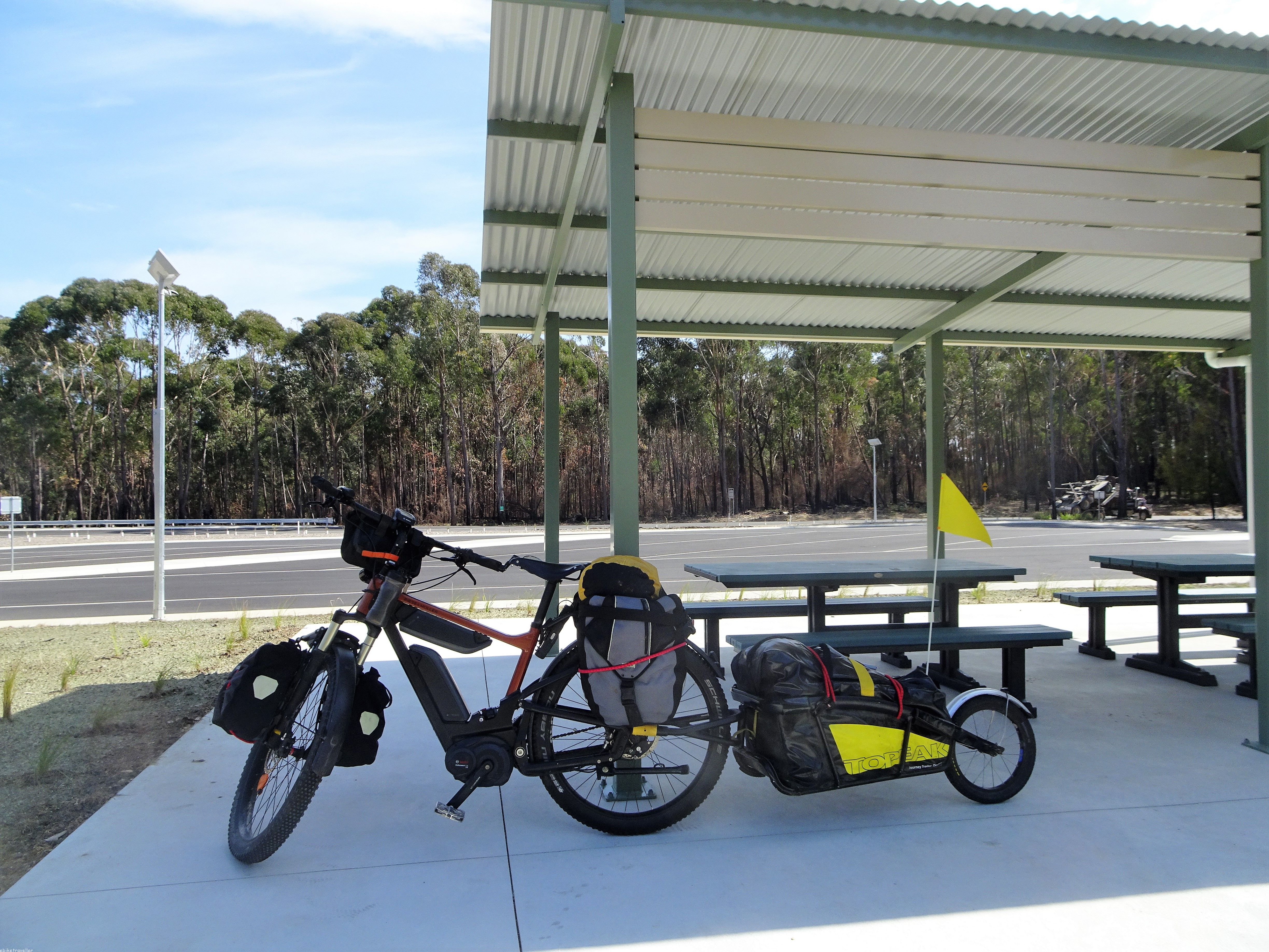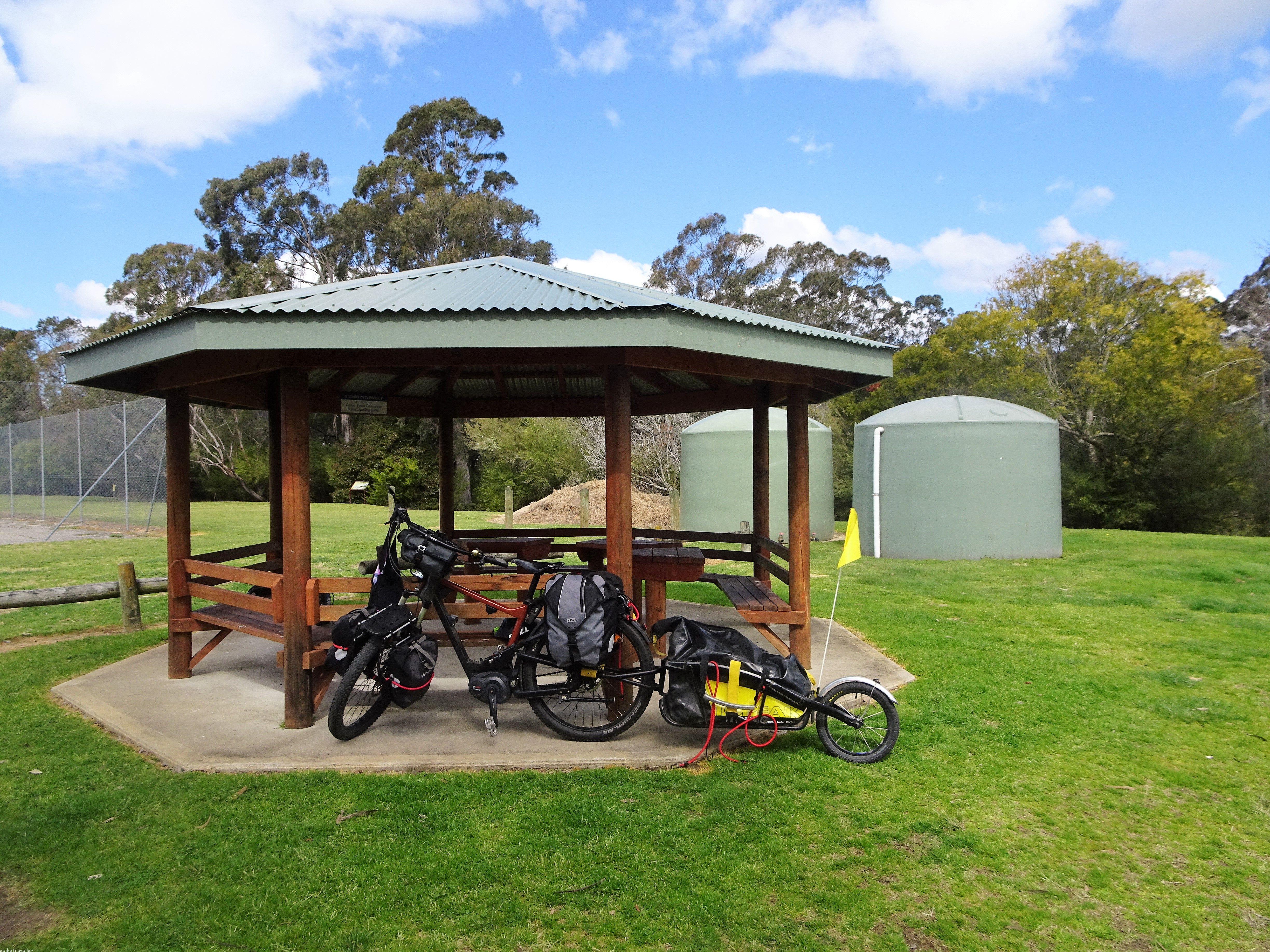 Charging up on the East Gippsland Rail Trail at Nowa Nowa