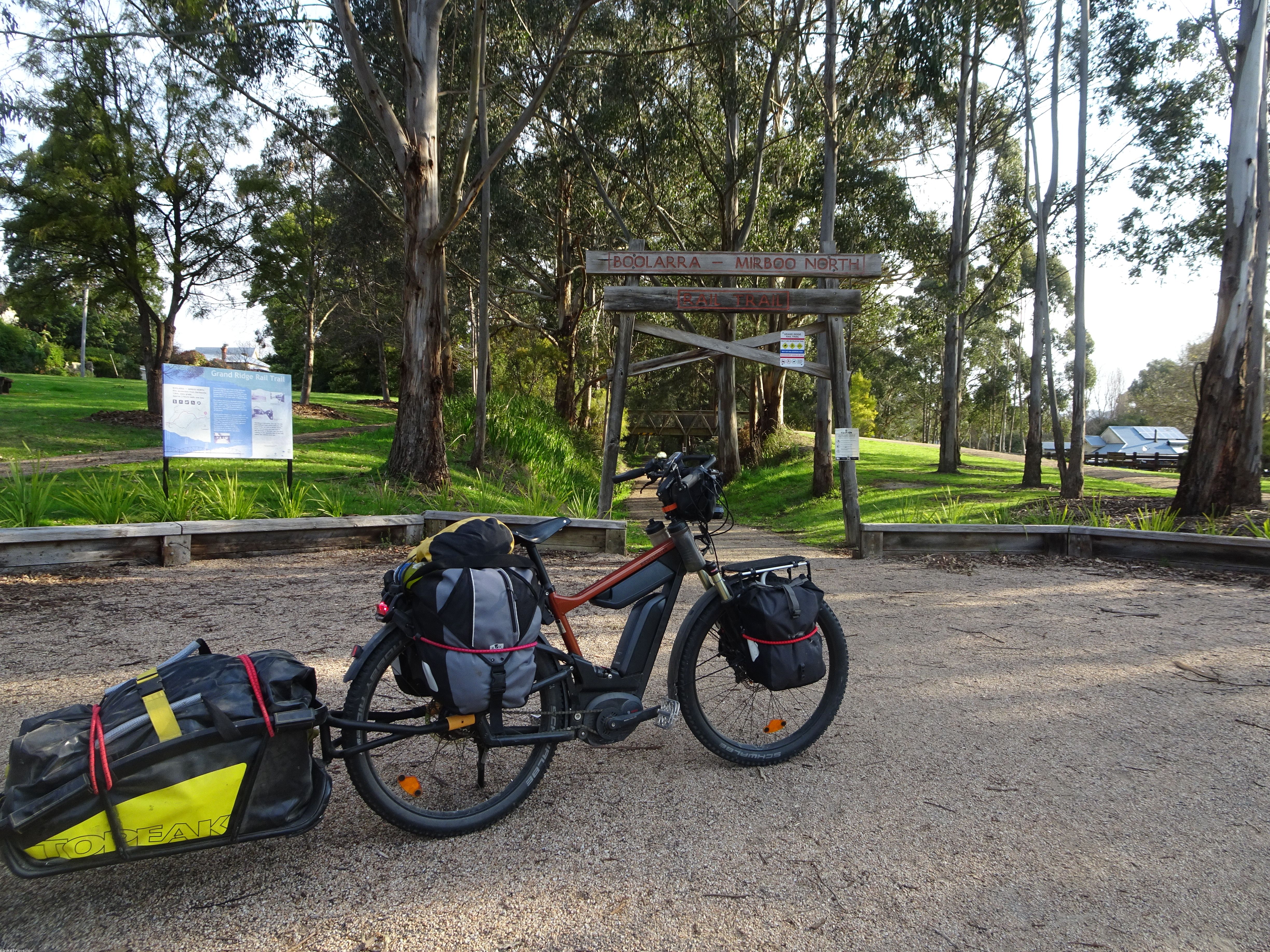 With all that great cycling behind me, I popped in to Riviera Cycles in Bairnsdale to get the dope on what delights lay ahead.  The shop owner, Gary, is a touring-cyclist enthusiast himself, and even has the same Topeak brand of Journey Trailer as I do!