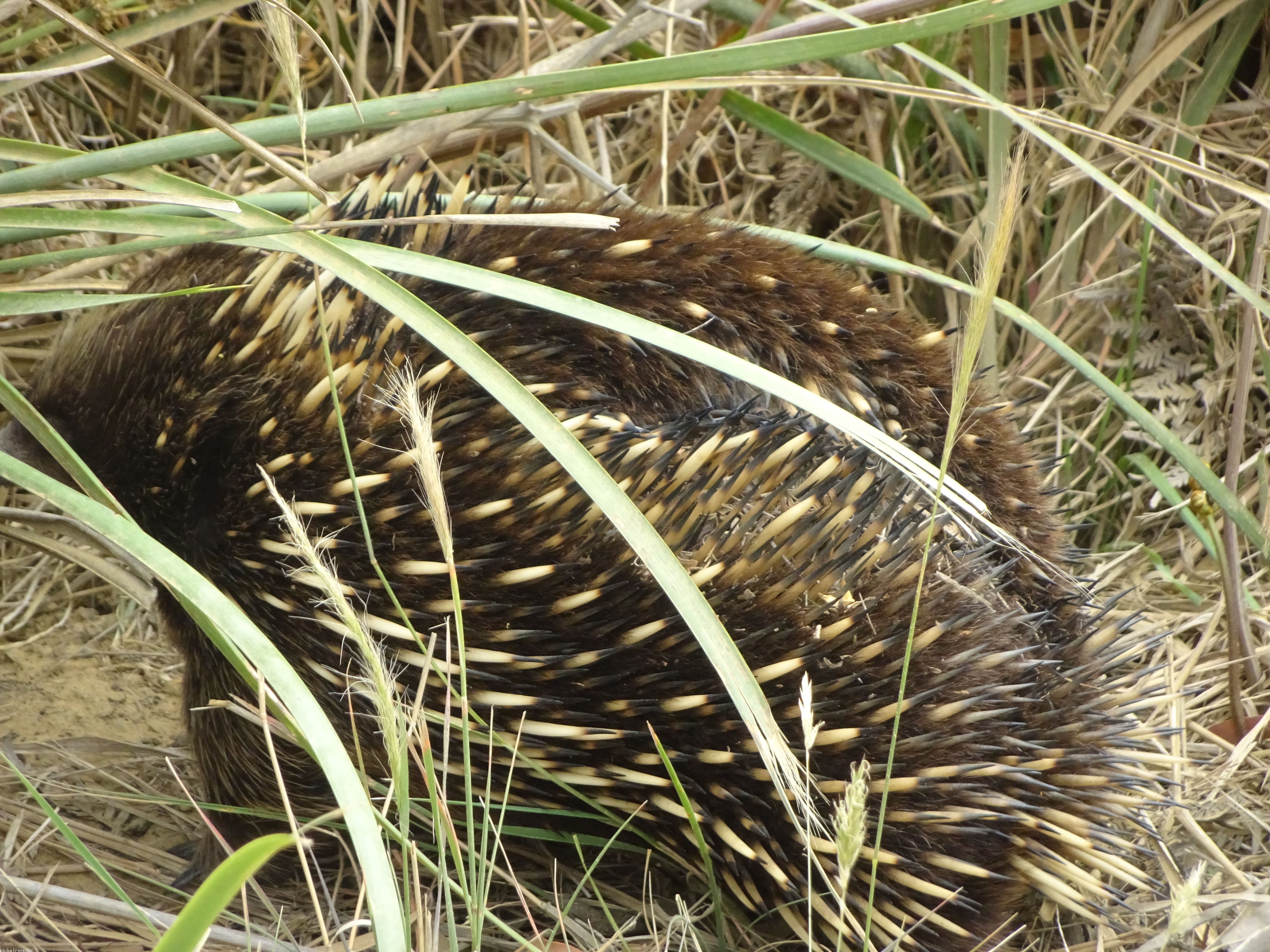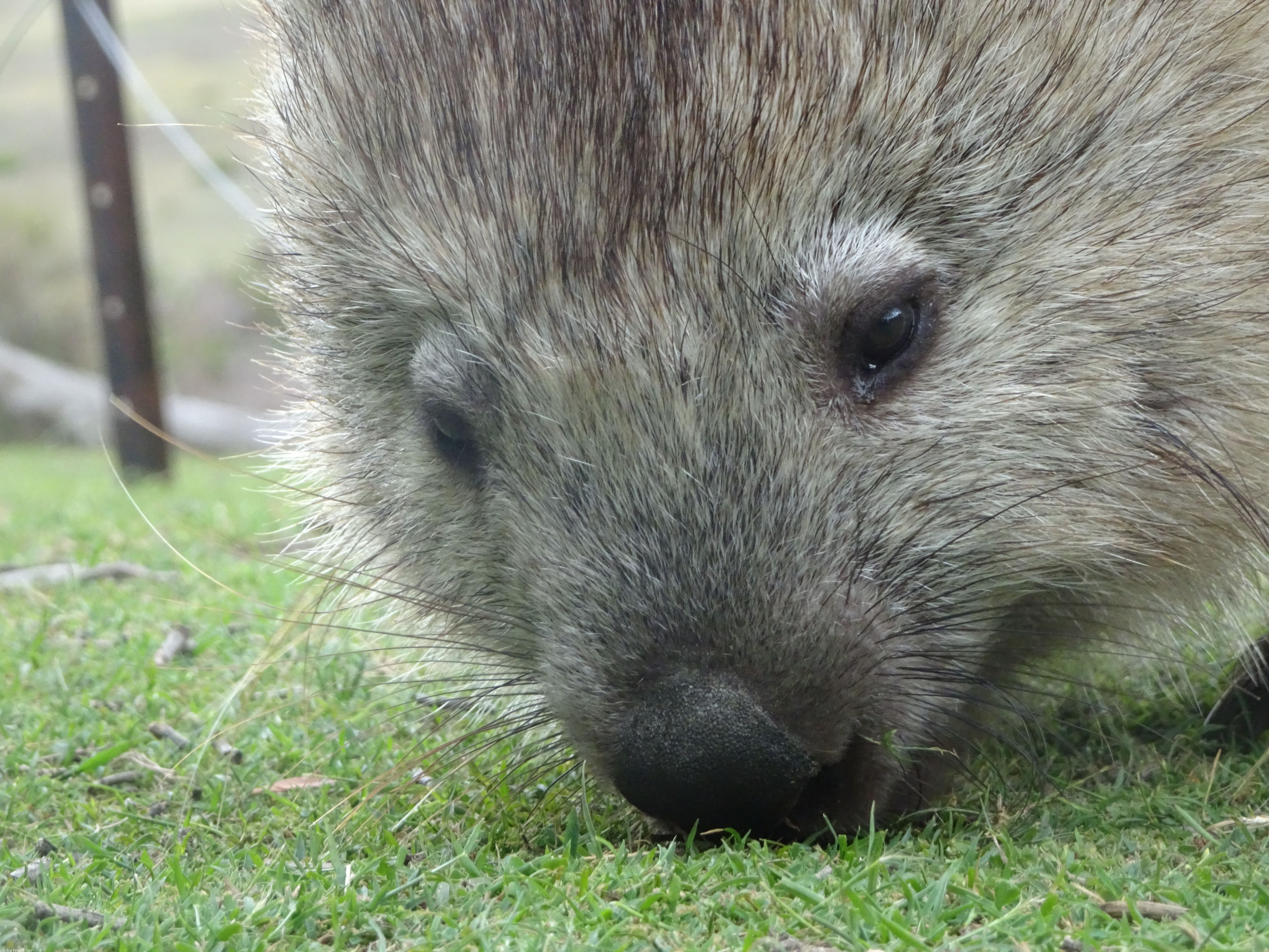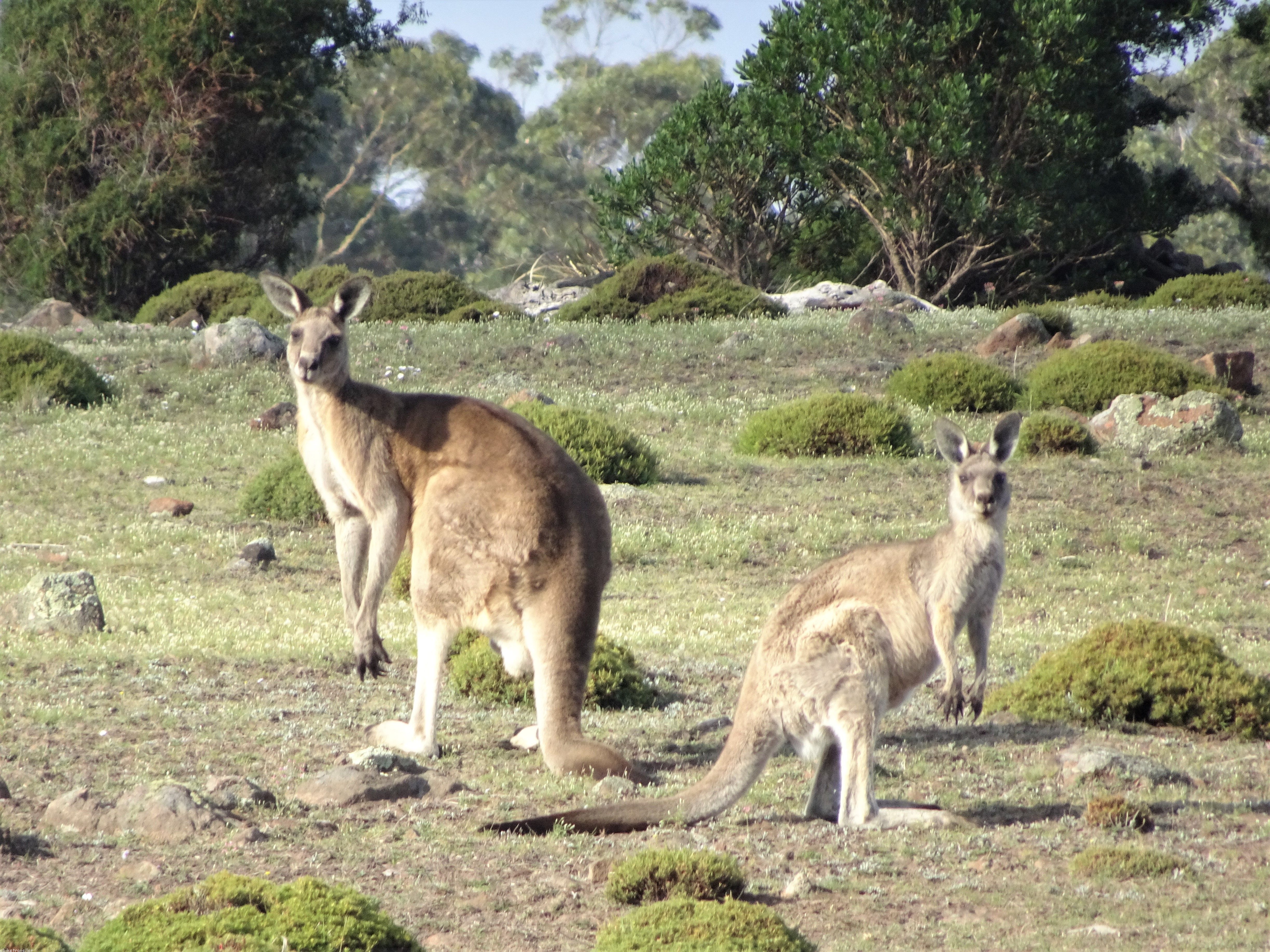 I decamped around midday next day because the constant wind was driving me crazy and because the forecast was for more of it plus rain, and I was also worried about being bogged-in due to flooding of the causeway over to the cove (not such an issue for the others, as they could carry their bikes through), and so rode back up the island again to set up camp at Darlington, the more civilised end of the island close to the ferry landing. And rain it did too, off-and-on all day, so it was spent mostly under cover but the local wildlife – Cape Barren Geese, Native Hens, Pademelons and Wombats – close by the whole time.