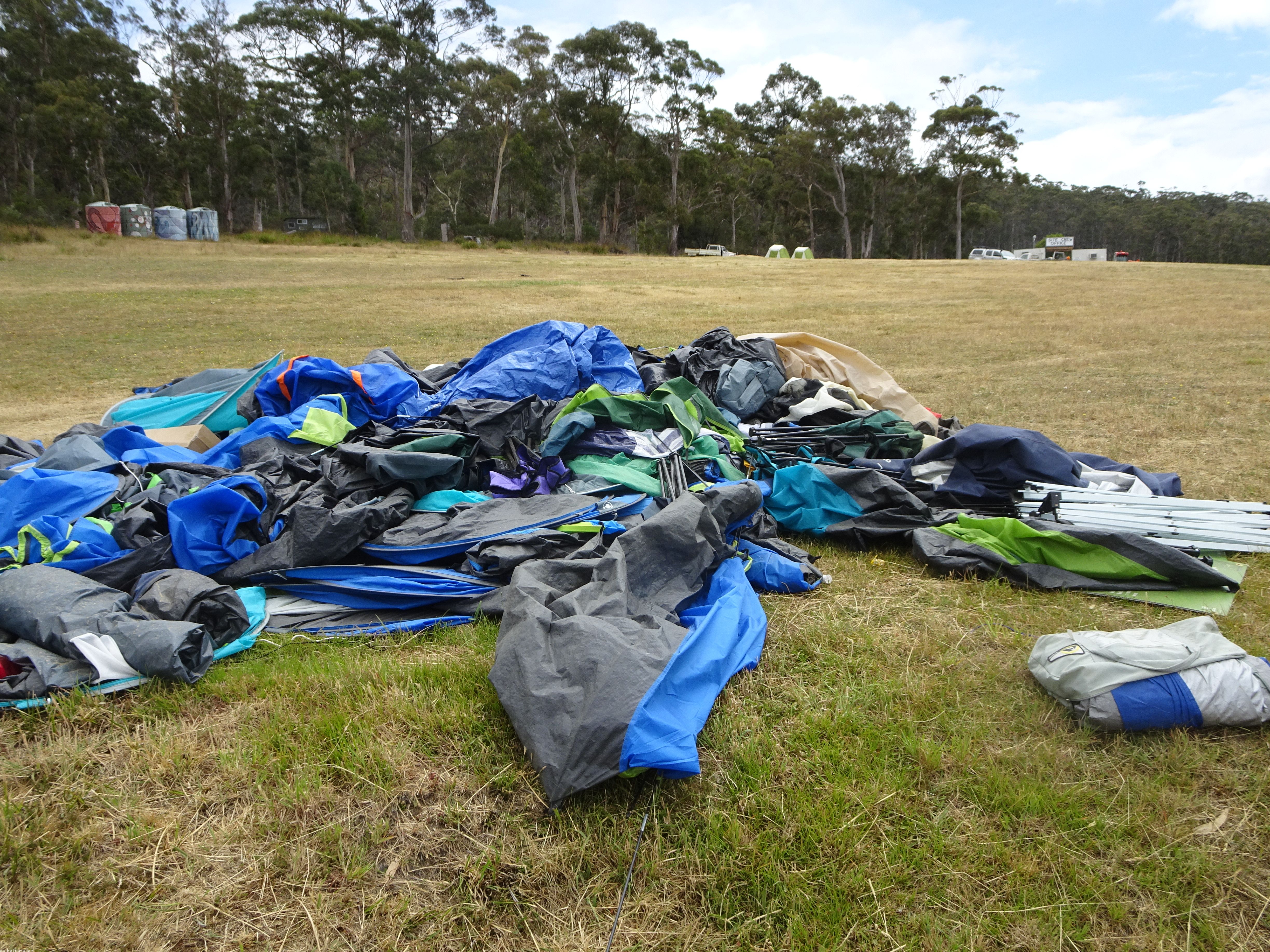 The Wielangta and Rheban roads – just tracks really – have some rather steep sections and are in extremely poor condition, which is apparently due to the massive surge in traffic attending the Falls music Festival last weekend. I didn’t know single-use tents were a thing.