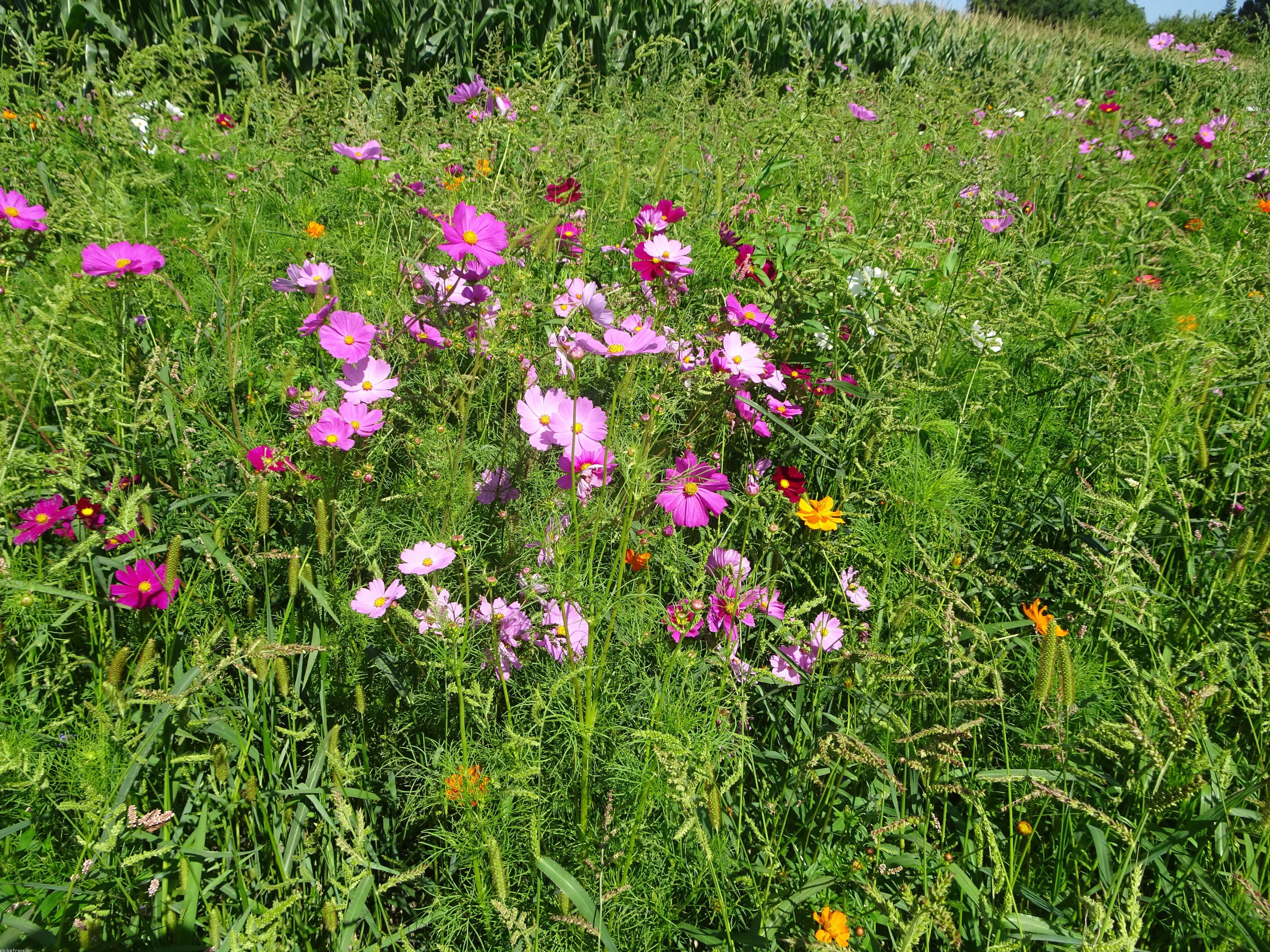 Here are some pictures of flowers growing next to a corn field. Corn is definitely the staple crop around here and in the whole of Europe. I hope they’re smart enough to just eat the stuff, rather than waste it on the inefficient conversion to motor fuel, like the Spanish and the Americans do [Ed: It’s all used for animal fodder, I later discovered]