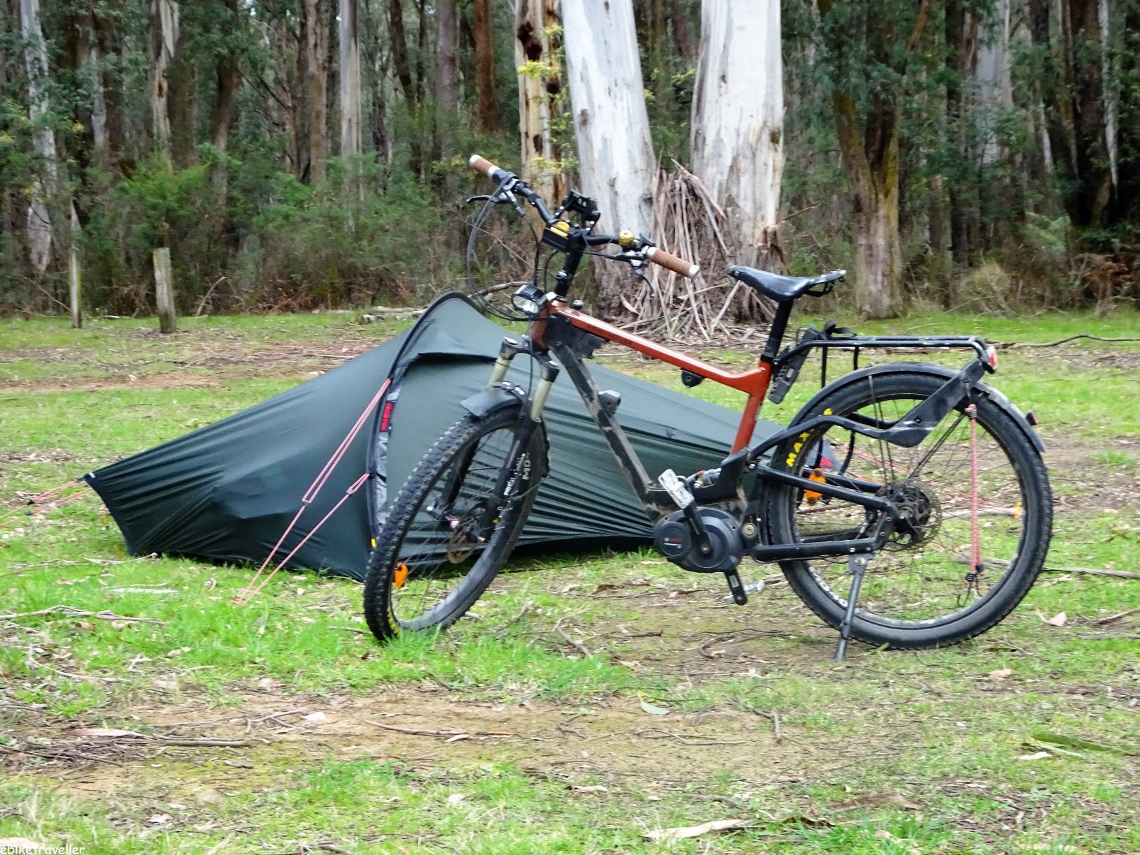 It rains a bit as I am packing up early next morning, so I simply move the tent in under the shelter and wait for an hour for it to dry off before packing it away and heading out at 8.30am.