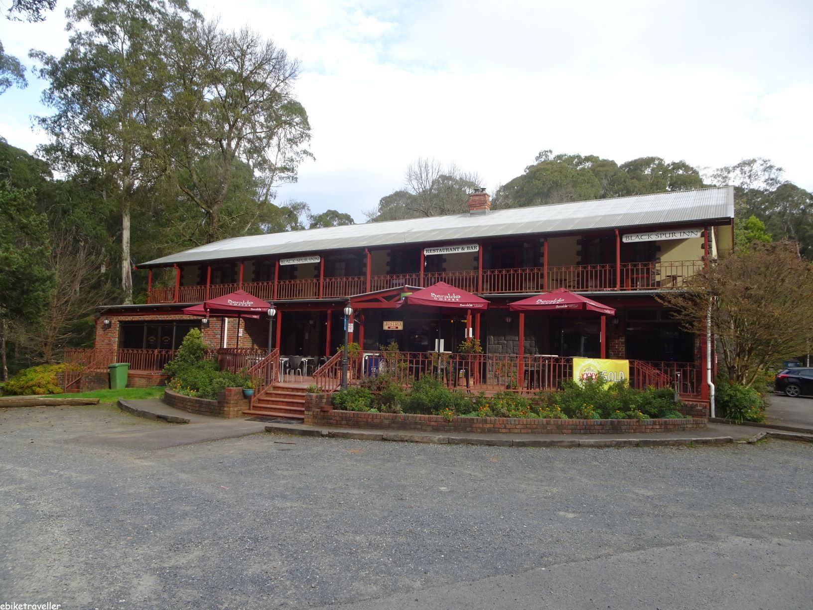 Instead, I stay on the relatively flat C512 and make for the Black Spur Caravan park. But when I get there I find to my dismay that it’s permanently closed. I panic and backtrack 2 km to the Black Spur Inn. I’m relieved – they have no problem with me charging-up in the front bar.