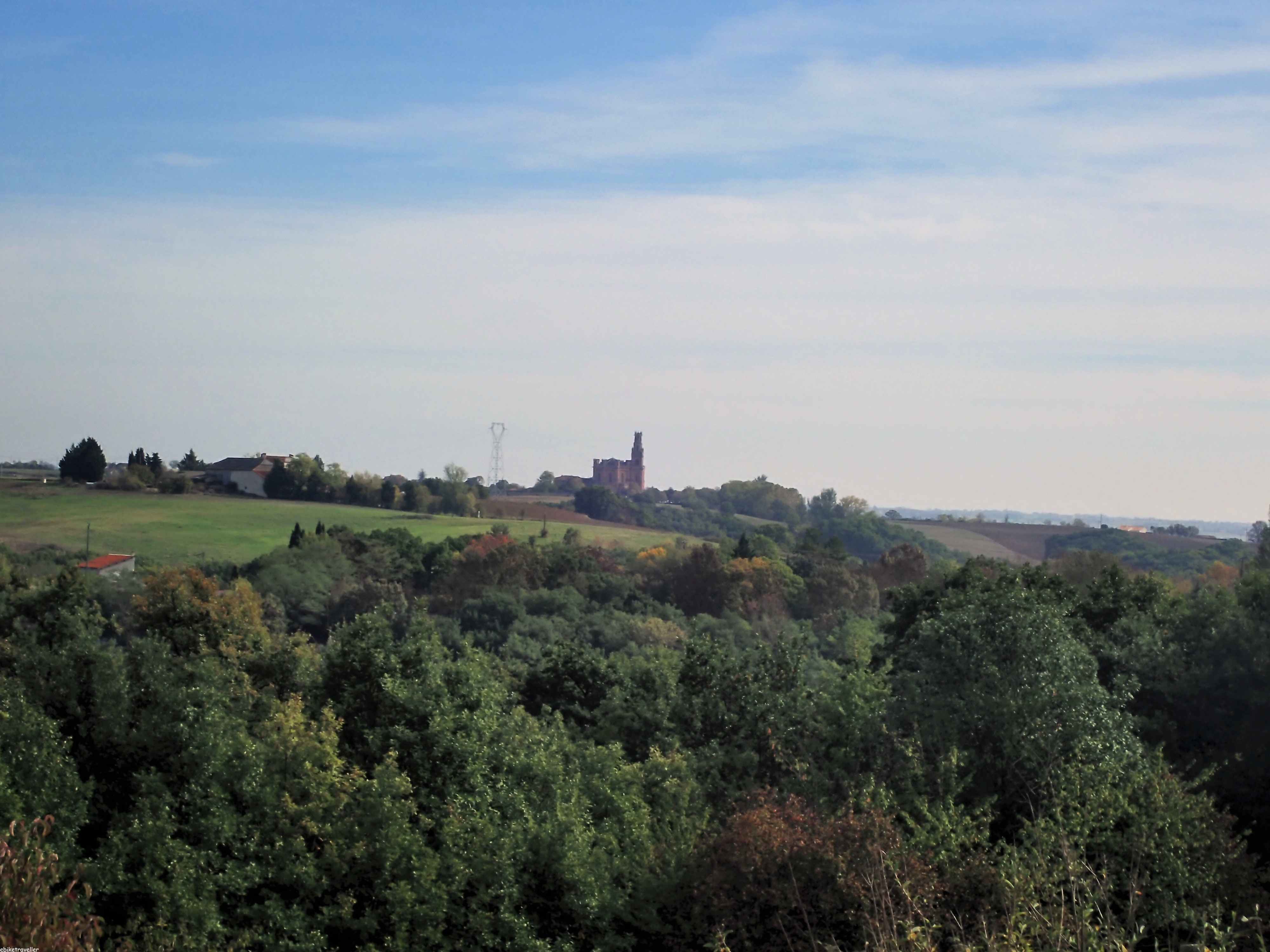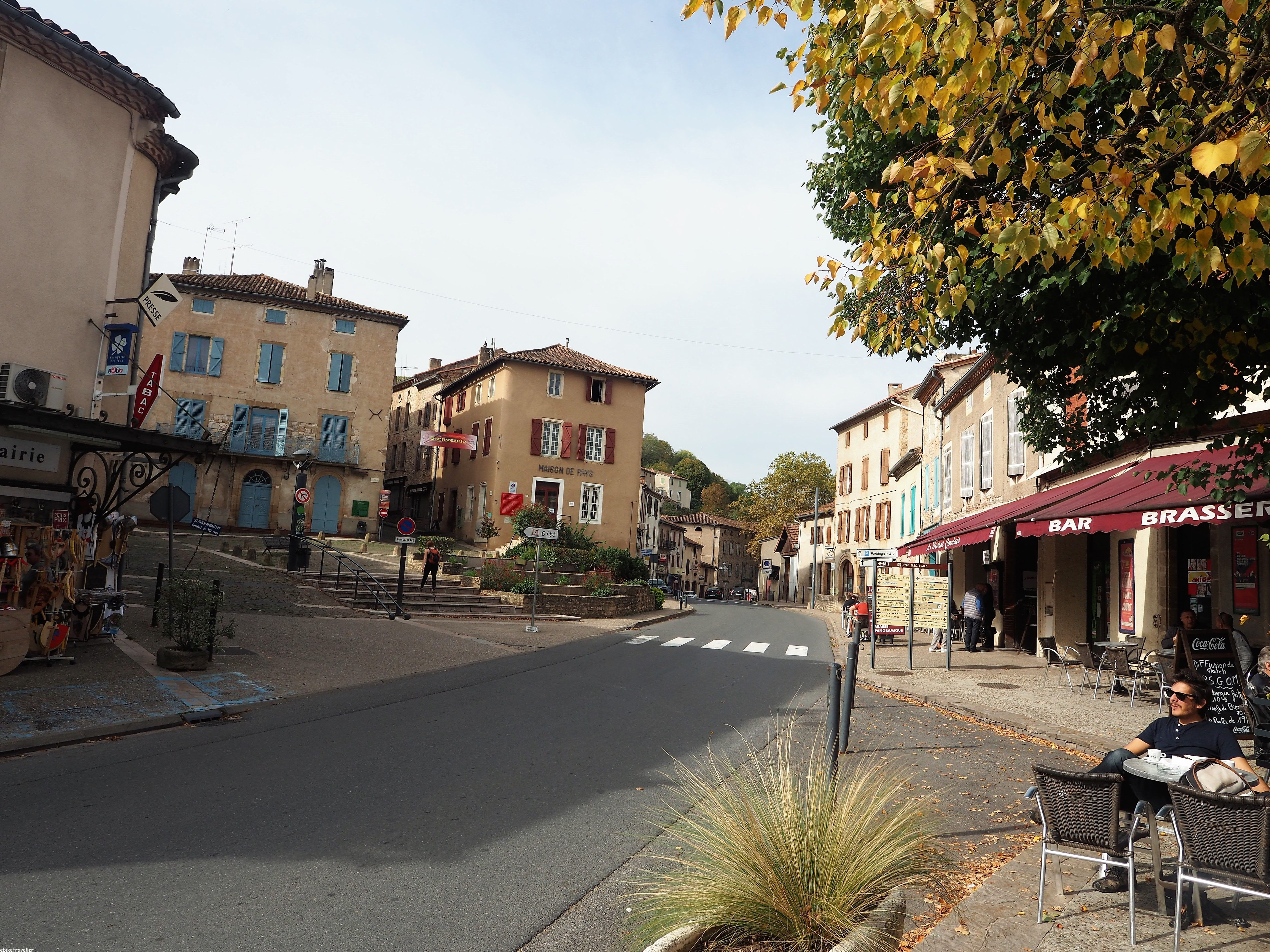 First, it was a long steady climb out of Albi up onto a ridge that went through the ‘Forest of Saint Quintin’. This was fantastic and it felt like being on top of the world. I could still see the Saint Cécile cathedral in downtown Albi from 10 kilometres away, as well as far-off mountain ranges all around behind the charming rolling countryside I was cycling through.