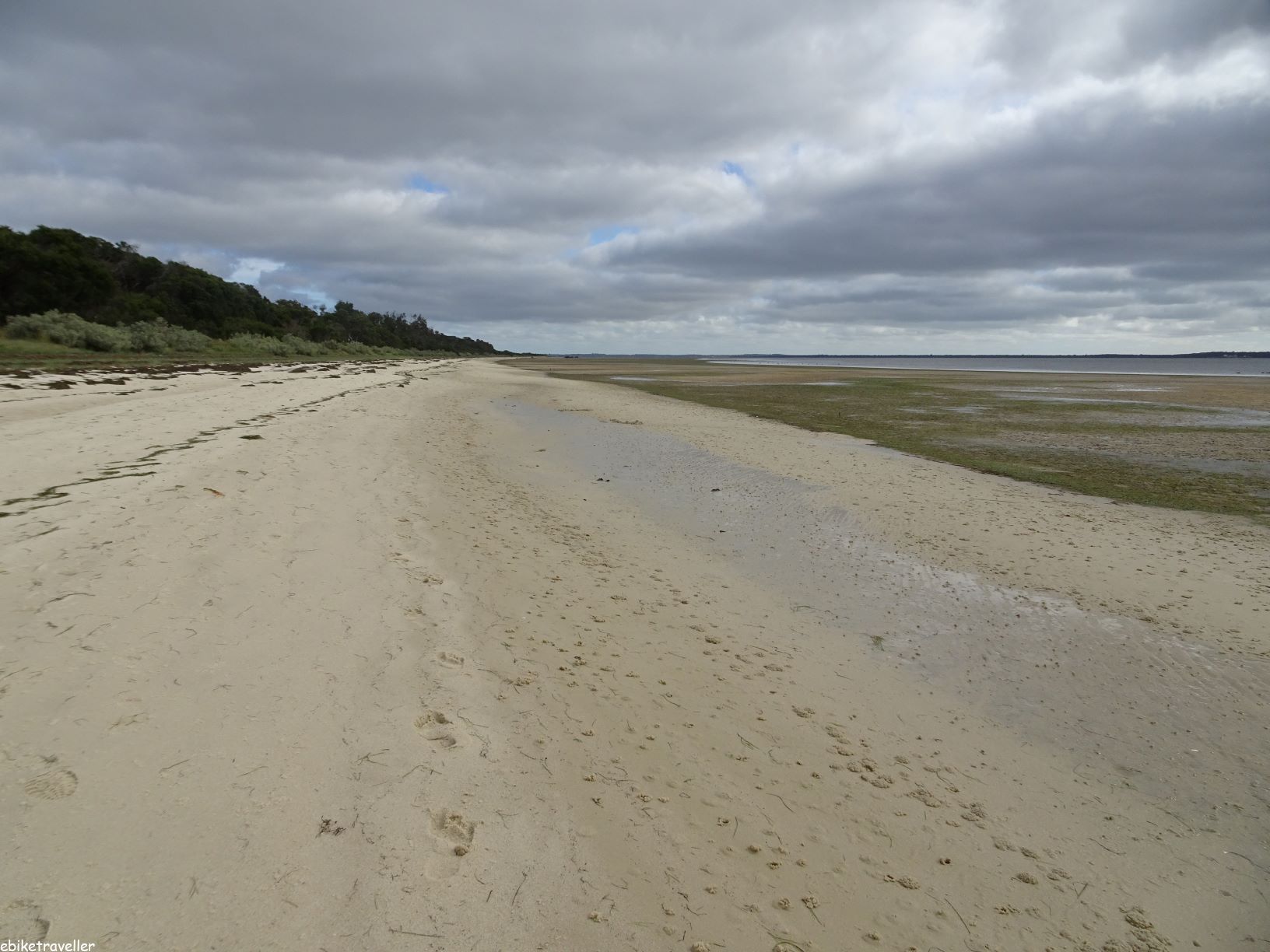 I didn’t think much of Venus Bay. It has a crappy caravan park located right in the village, which is landlocked and sheltered from the ocean beach by a series of wooded sandhills. It rained off-and-on all night, and the 4 noisy women in the cabin opposite partying till 12 pm didn’t help either.