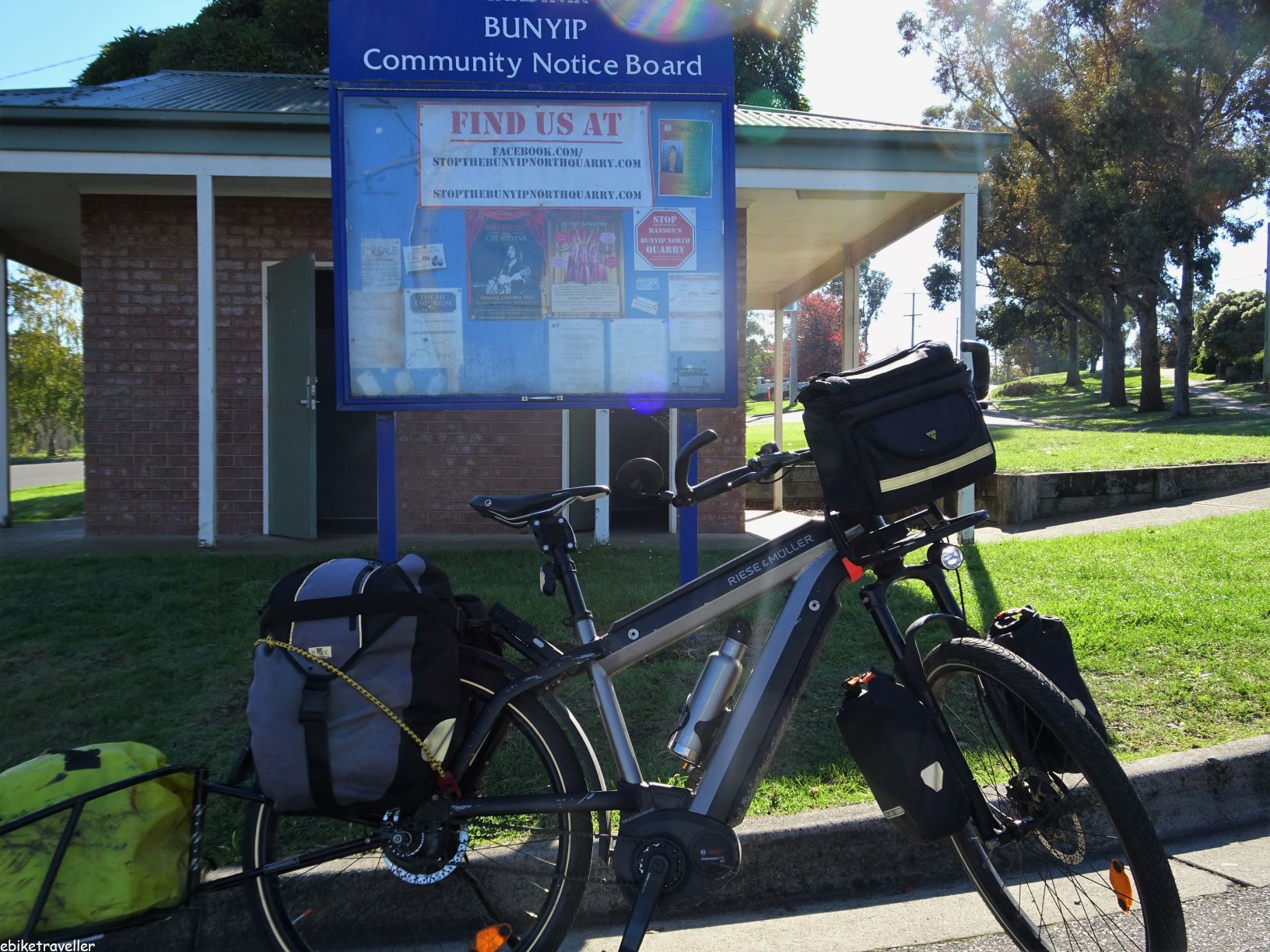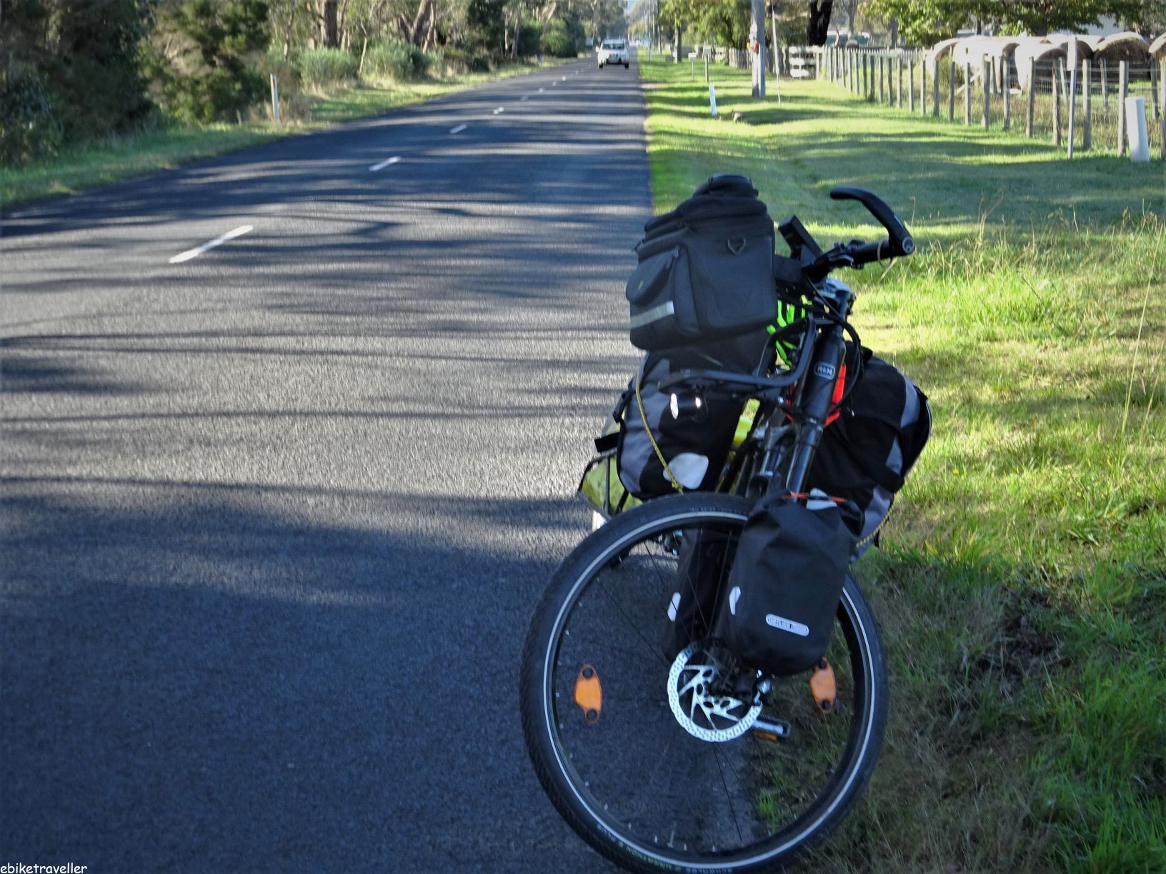 There was a thick fog at daybreak that didn’t burn off completely until after I’d packed up and got going at 9.15. The route was essentially retracing my path of yesterday through Warragul, Drouin, Longwarry, Bunyip, Garfield, Tynong and Nar Nar Goon to Pakenham.
