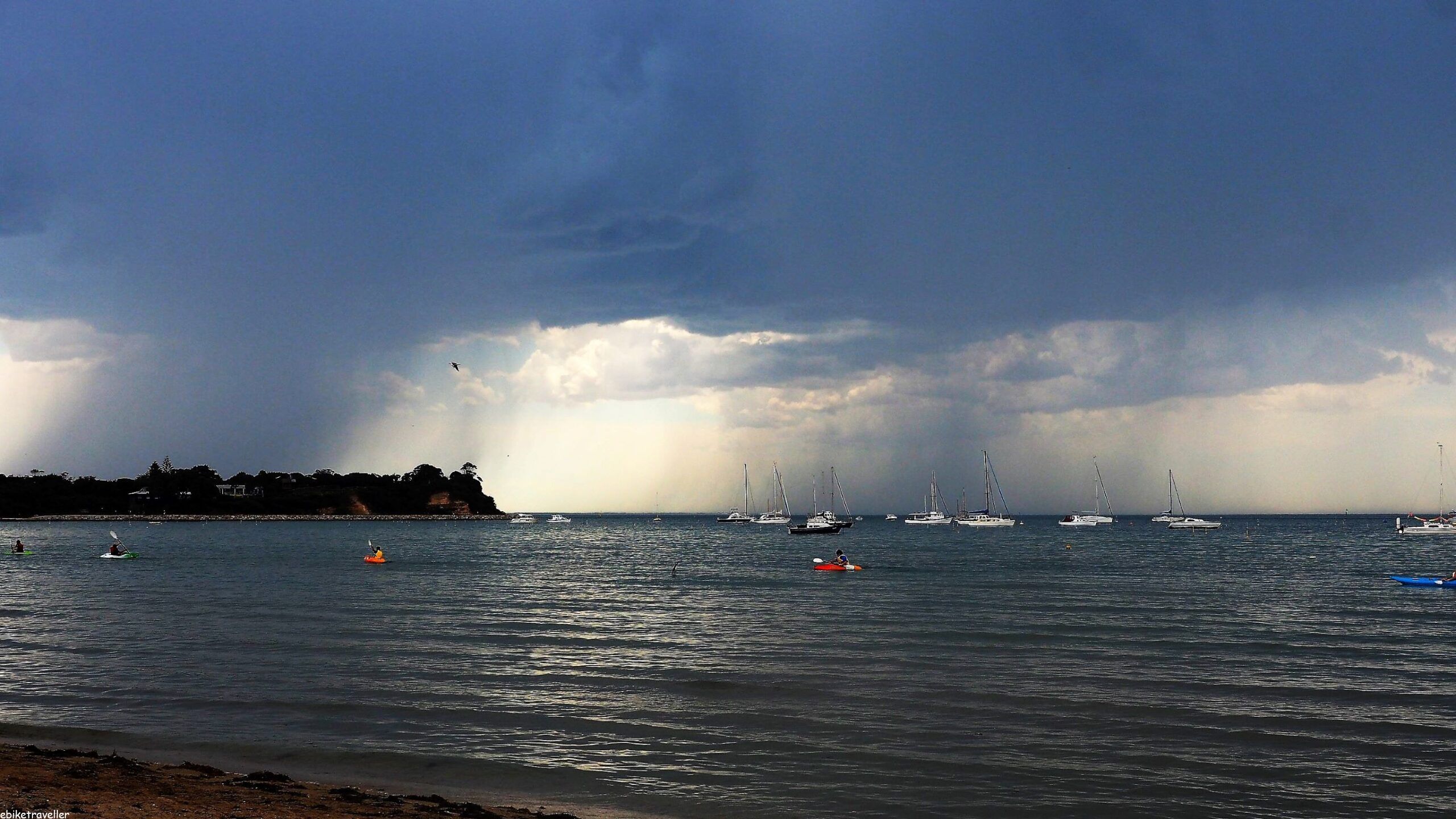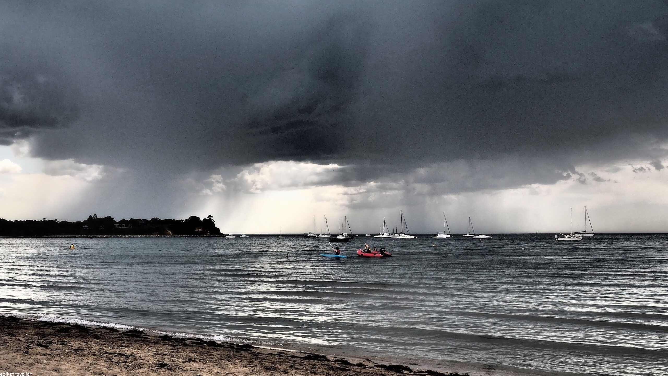 The storms passed through and the evening sun came out. Later on, Justine and family came over (they live nearby, only about 2km from where I was camped) and we had a nice picnic on the beach.
