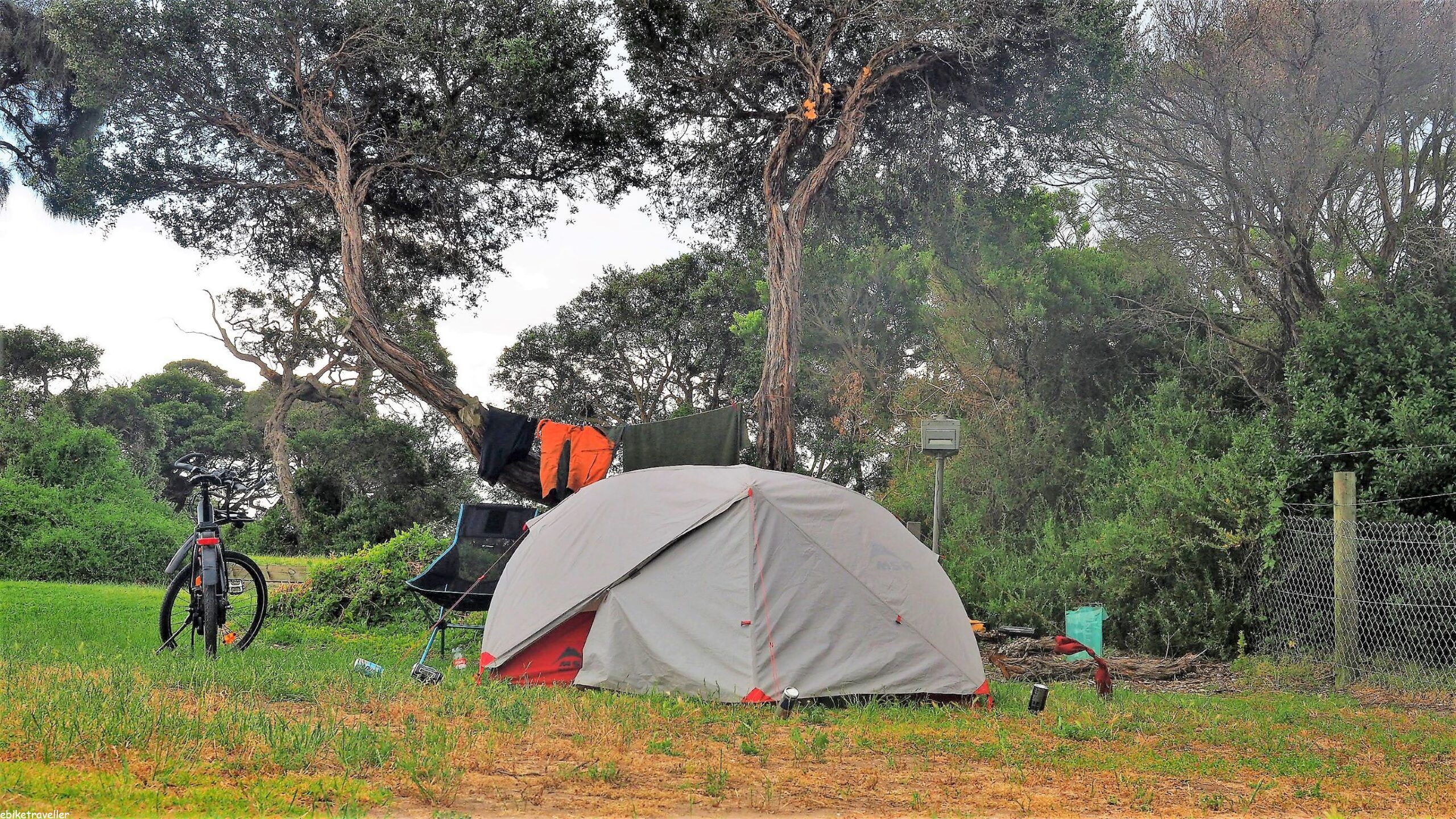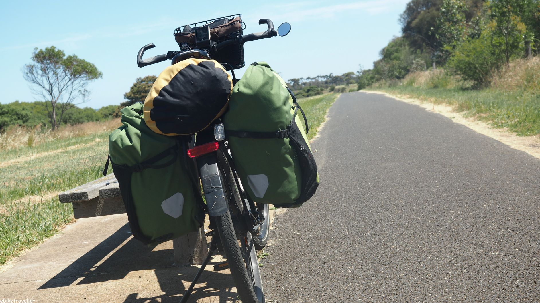 I was quite chuffed with myself (it means ‘pleased with myself’ if you’re not used to Australian english vernacular) after the day’s ride. Even though it was flat enough, I did have a moderate load on board – with all the camping and cooking gear, clothing and bike tools and chargers etc., – and yet still managed to achieve a putative range of 200+ km for the day (ie. 90 km still left in the batteries after 117 km travelled). This is a good thing because it meant I’d only used the power assistance sparingly, which indicates my damaged left knee might finally be ok now.