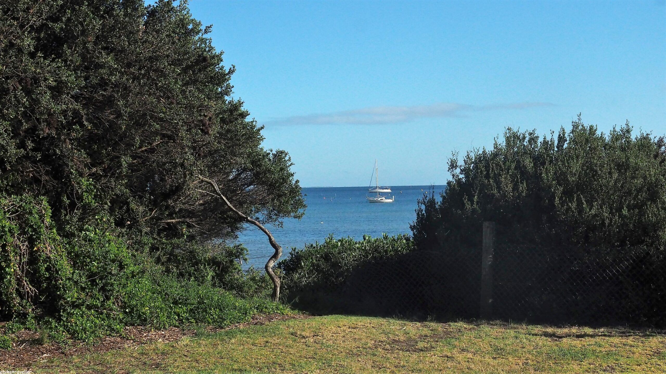 I spent a bit of time going backwards and forwards along the ocean-side shore of the Bellarine Peninsula as far as Barwon Heads looking for any available campsite but the campgrounds – that are all run by the local councils – weren’t yet open for the season, probably because of compliance with still-lingering COVID rules, I guess. They’d been shut down for two summers already and weren’t in a hurry to re-open.