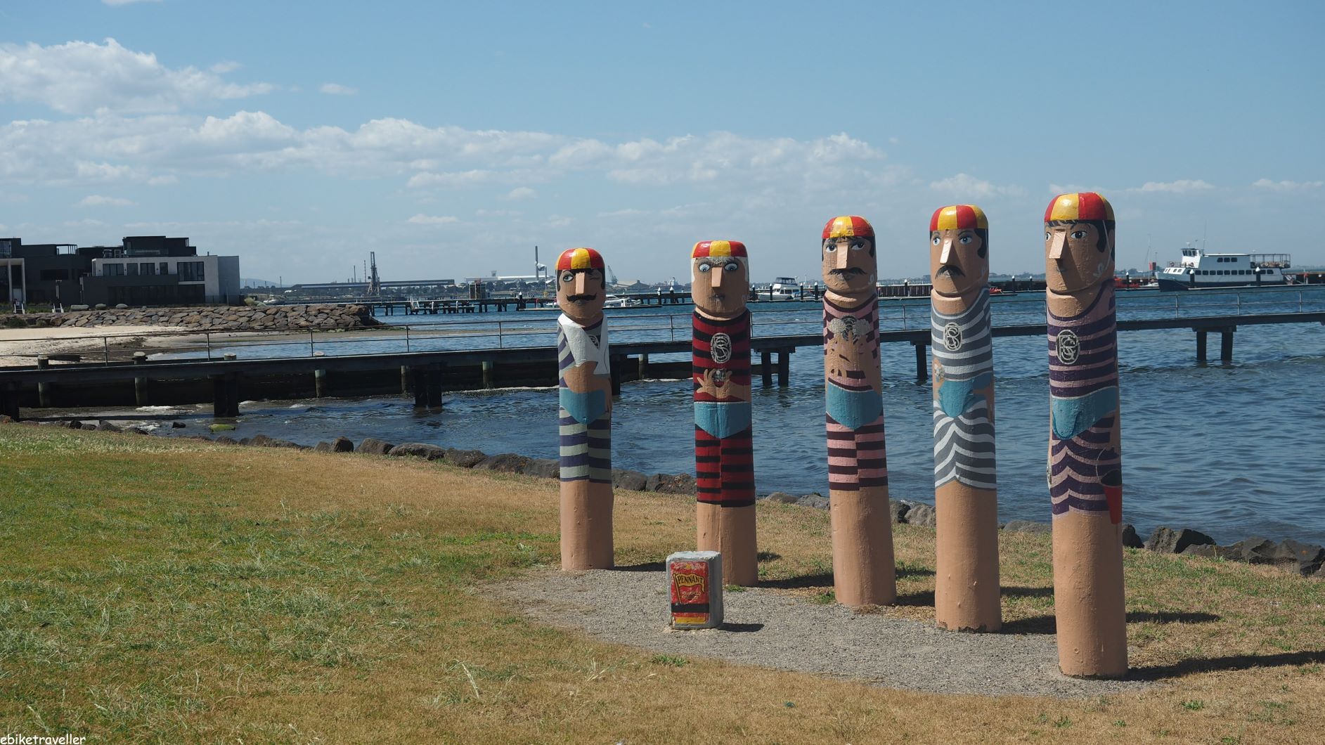 After pristine Limeburners Bay with its black swans you’re then straight onto Corio Bay with its heavy industry. But it’s a surprisingly nice ride along here too. They’ve gone to a bit of trouble to beautify the landscape and create a ‘proper’ bike path along the foreshore, and there’s some interesting art installations and murals to look at along the way.