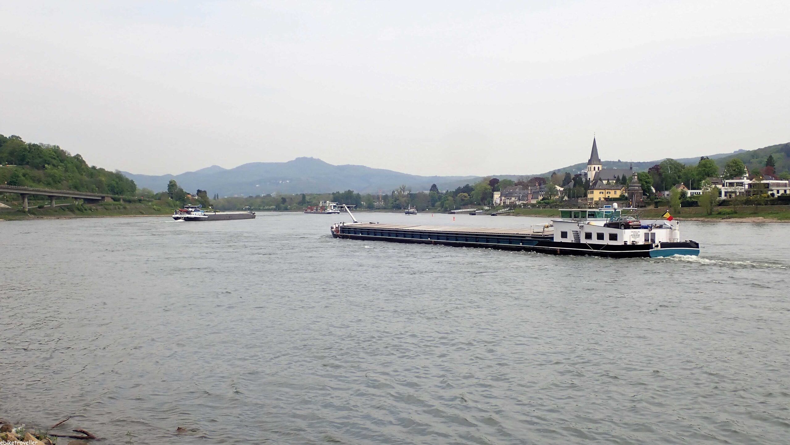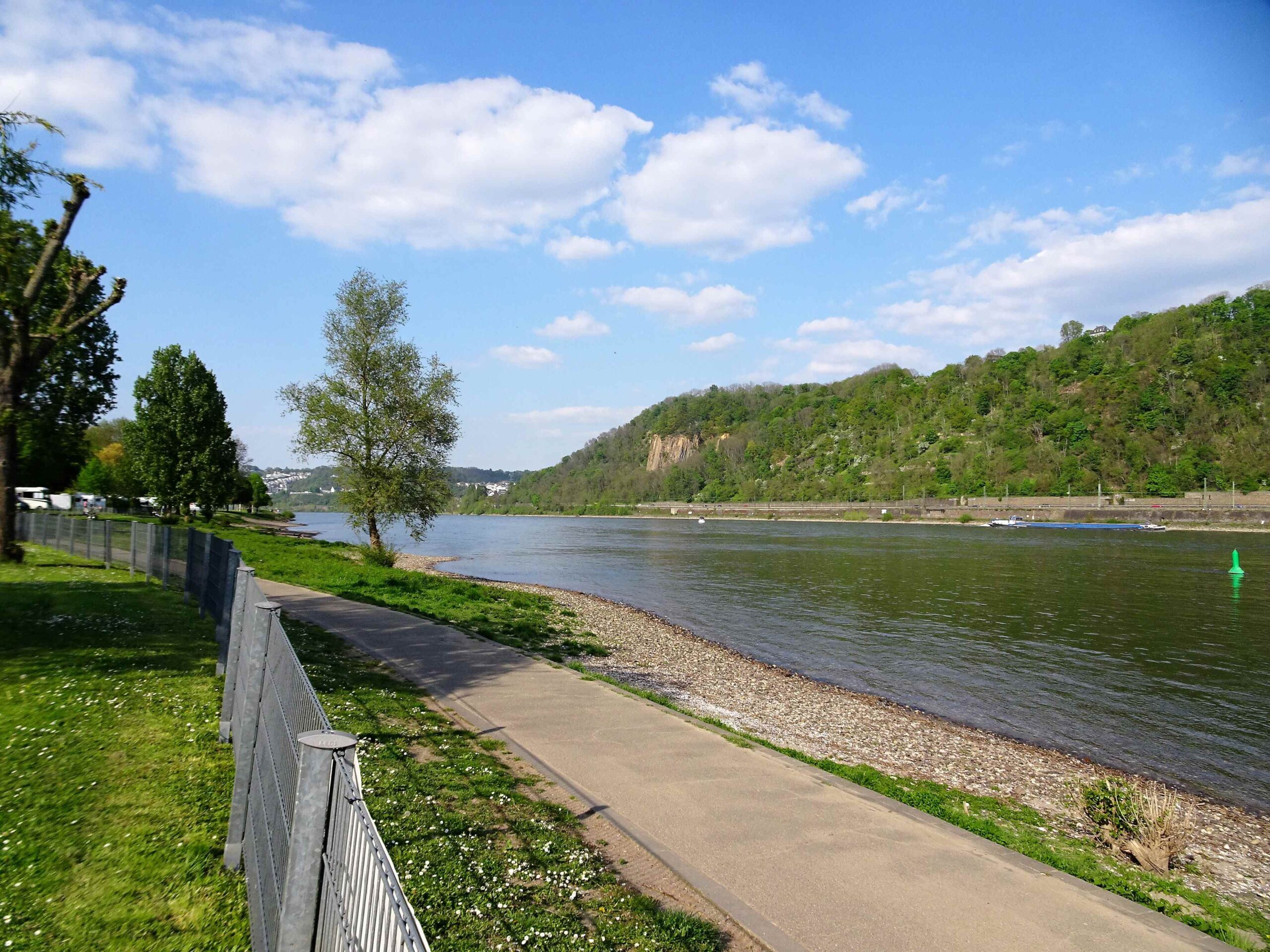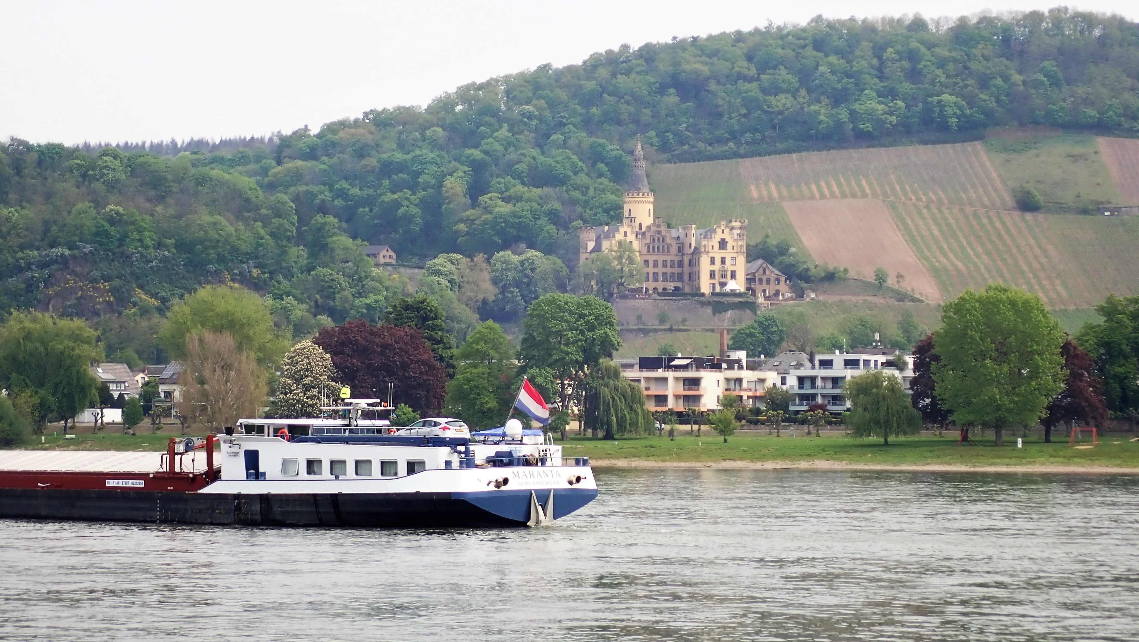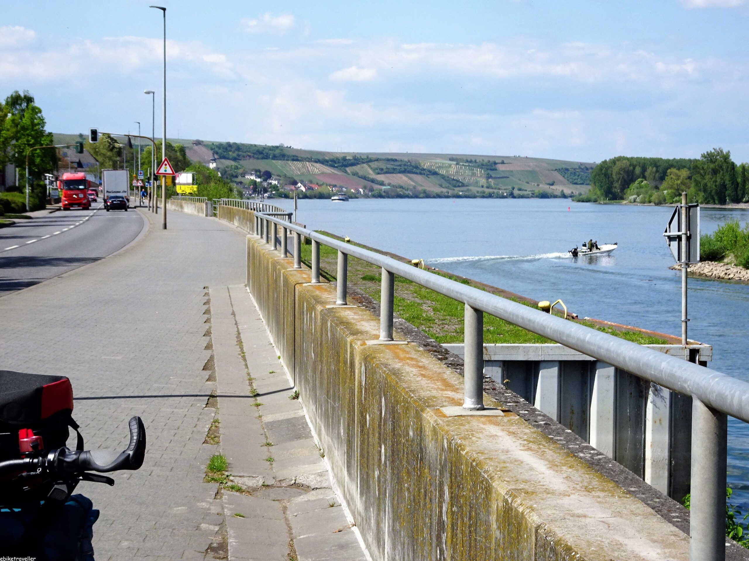 The whole section from Bingen to Koblenz is ideal for the cyclist. The EV15 route is right alongside the left bank of the river for most of the way, in a narrow valley with precipitous vine-clad hillsides, hill-top castles and picture-perfect little towns along the way. I also like the hectic industrial aspects of Rhine River life as well, with the constant barge traffic in both directions and the freight trains constantly roaring through on both sides of the river.