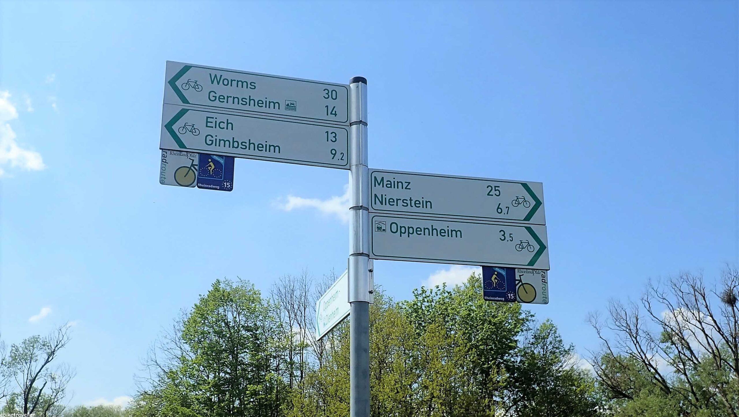 I got away to a good start at 08.30 from Sturm and Christina’s caravan park and followed their directions through the industrial area back on to EV15. But I soon came to a sign that announced “Fahre Kaput” 🤣and a blocked-off canal bridge, and had to work my way around the long way. It was 3½-hours before I came across EV15 again but the GPS set to destination Gernsheim seemed to know what it was doing and I just followed along.