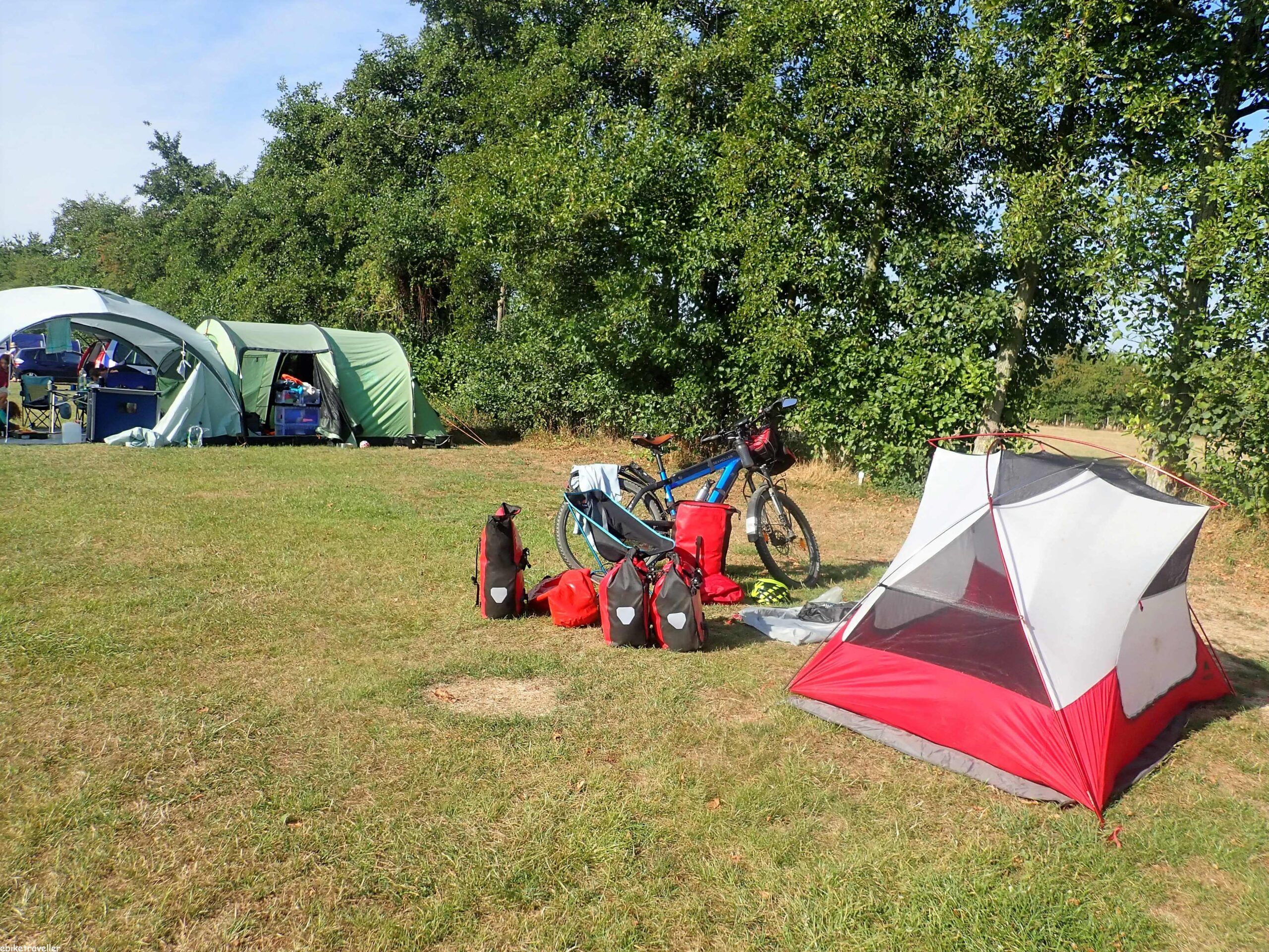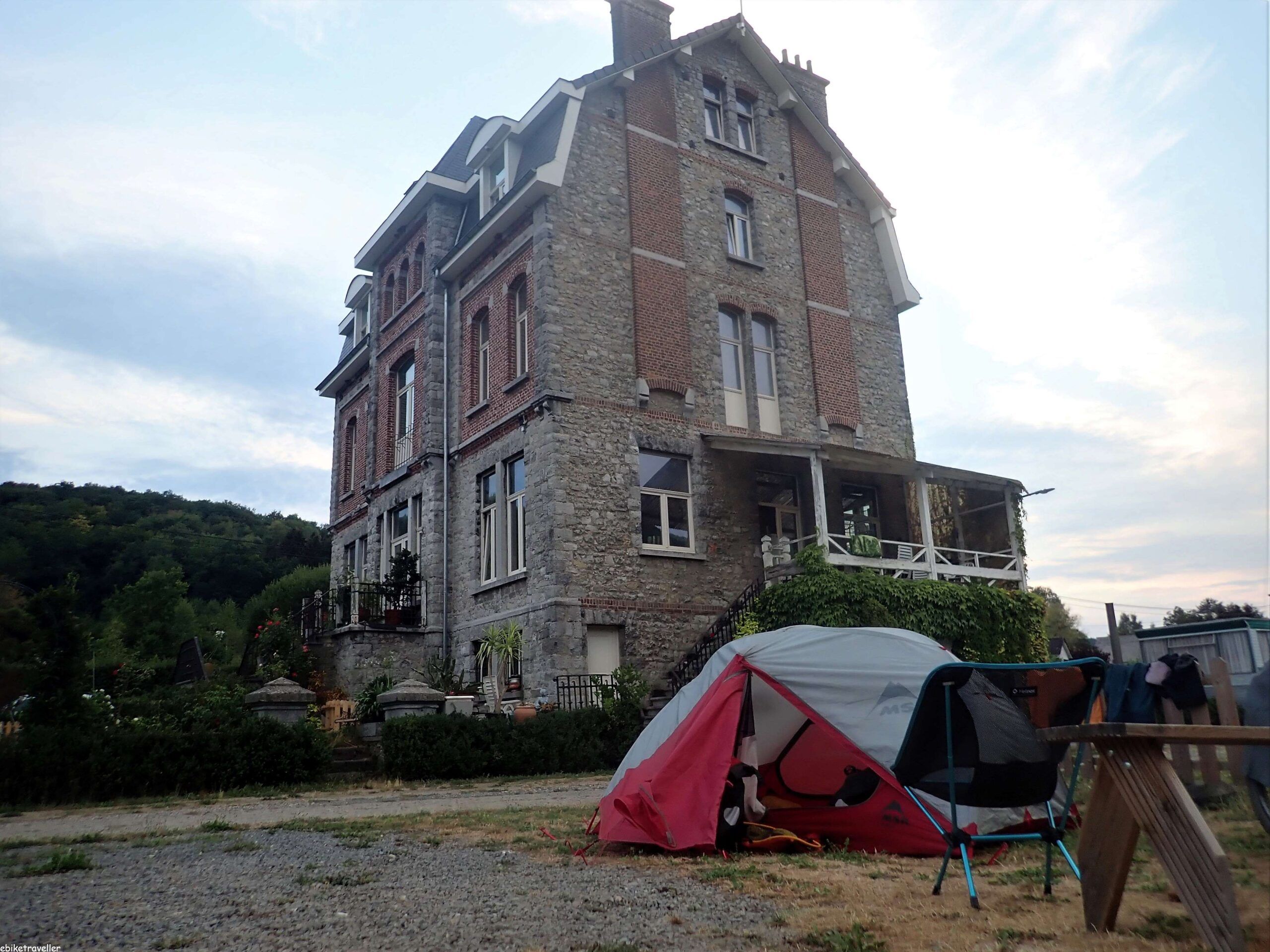 The campground I stayed at on the River Meuse, Castel Mosan, was a good find, and I only did find it by back-tracking down-river a kilometer or so from their hoarding, that I saw right where I popped back onto the main cycle path after my hellish downhill run. It’s in the grounds of an impressive château and Joe, the manager (and owner, I think, including of the château) was a real gem. The cost of the powered site was a bit high at €17 and there was no real food, but they made up for it with €1 beers and free bar nibbles. I did a lot of nibbling.