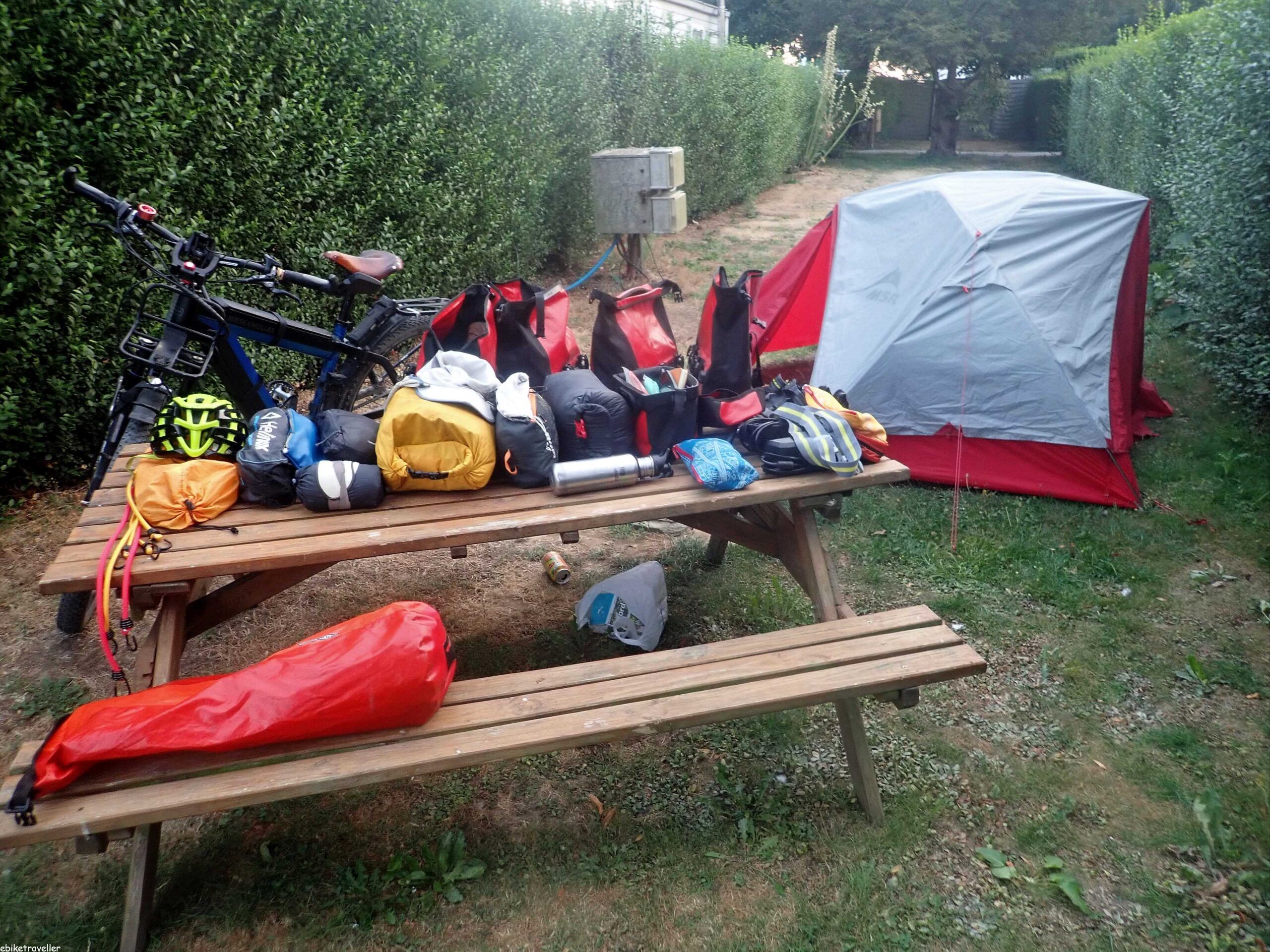 That’s quite a lot of gear I’m lugging around, as you can see. I had laid it all out to air and dry off a bit, and to redistribute the load more evenly among my four panniers (and to brag about how much shit I’m carrying around).