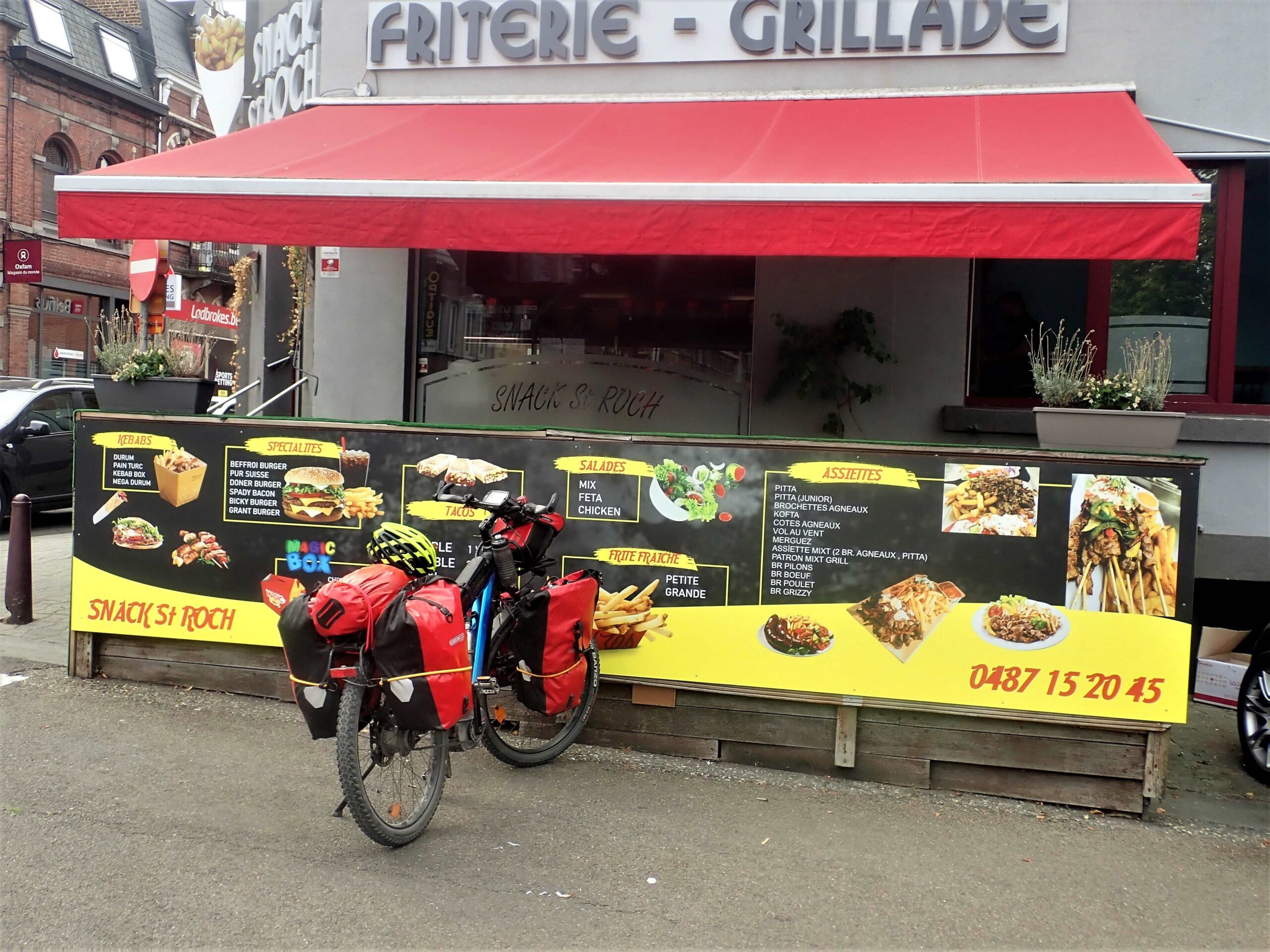 After Mons the terrain became more interesting through the Ardennes to Thuin, which is a really beautiful touristic town nestled in a narrow valley alongside the River Sambre, and where I was happy to have an enforced stop at a Turkish kebab joint for an hour to charge up. I should have stayed for longer though as it turned out.