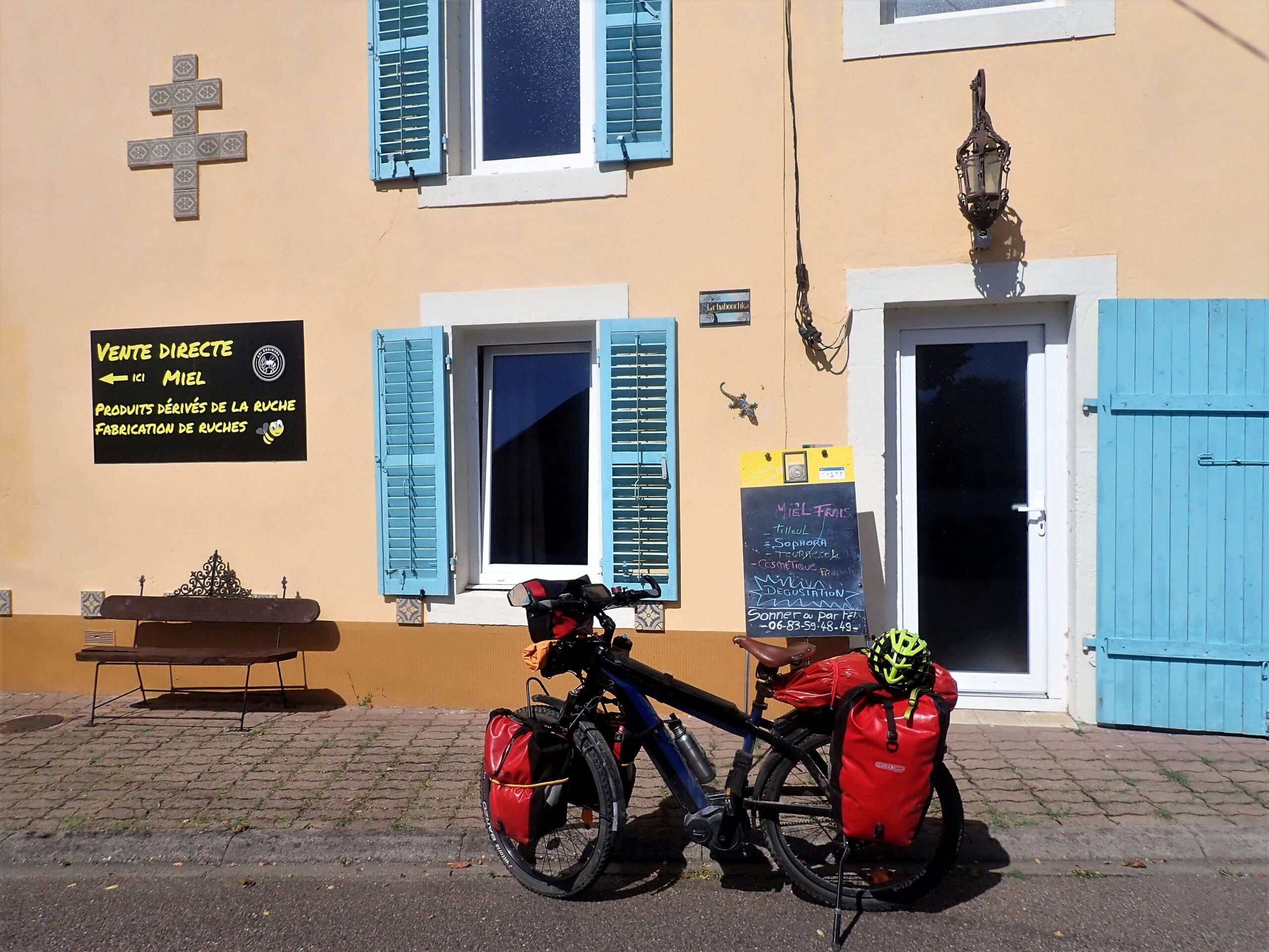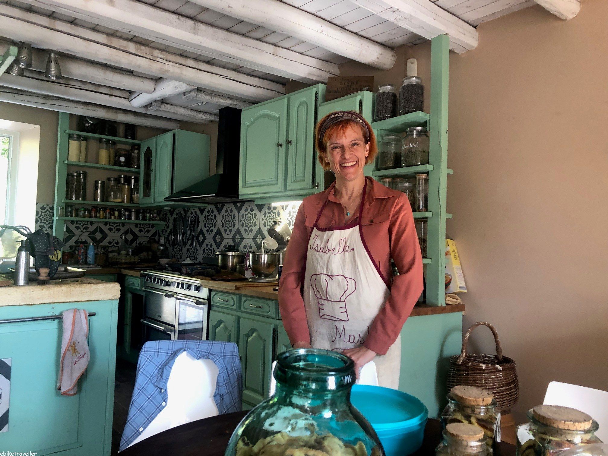 At the first town I came to after the forest, Pagny-sur-Meuse, I pulled up outside what I took to be a general store to buy some food since I’d had no dinner the night before. But when I stepped inside the “shop” I found myself in somebody’s kitchen/ dining room. That somebody was Isobelle who was busy in her rustic kitchen preparing more food.