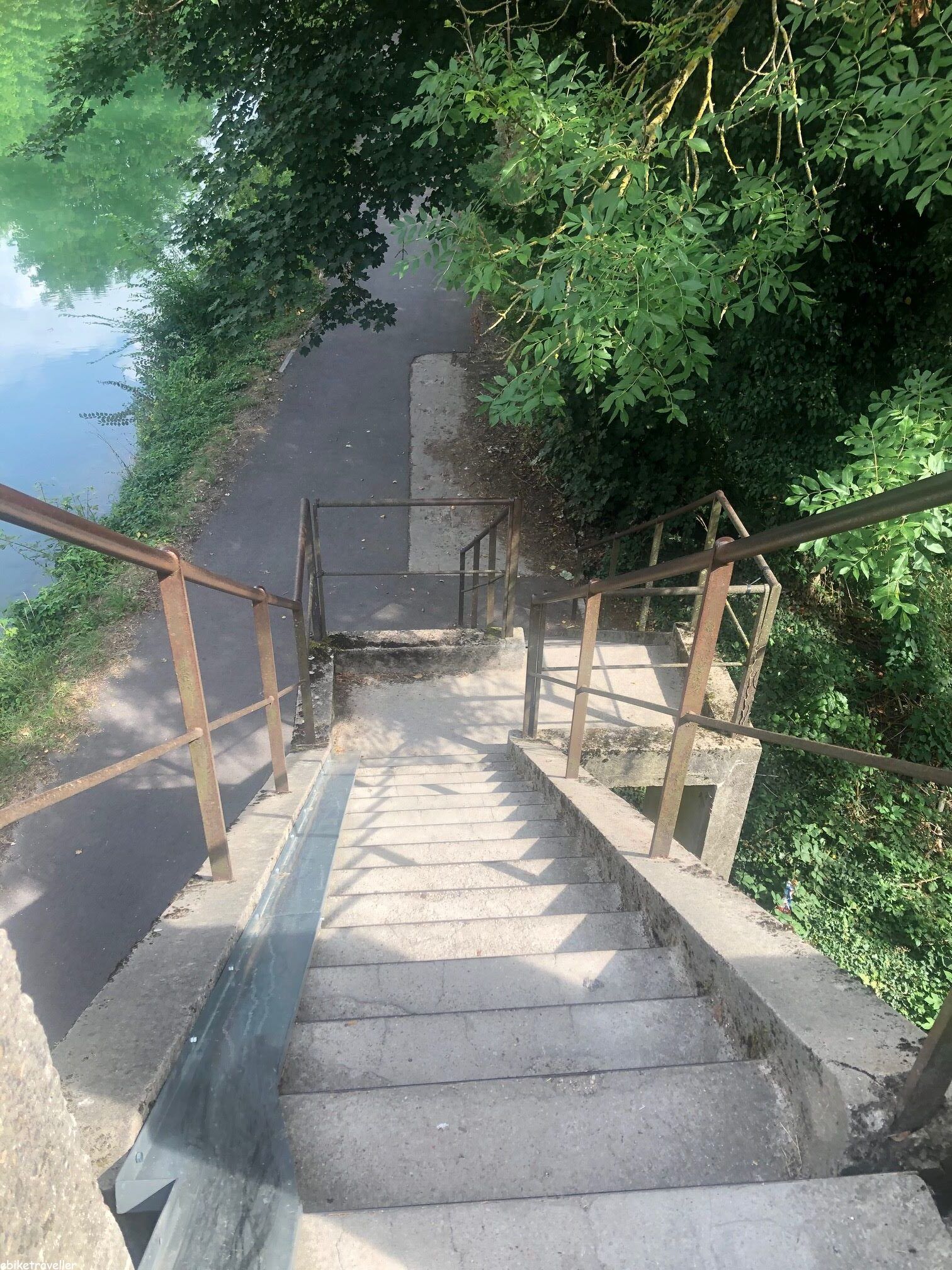 At least it was flat and rideable; however, getting into Verdun itself, it proved really difficult hauling my bike and all the gear up a long set of steep steps from the river towpath onto the D302B road bridge.