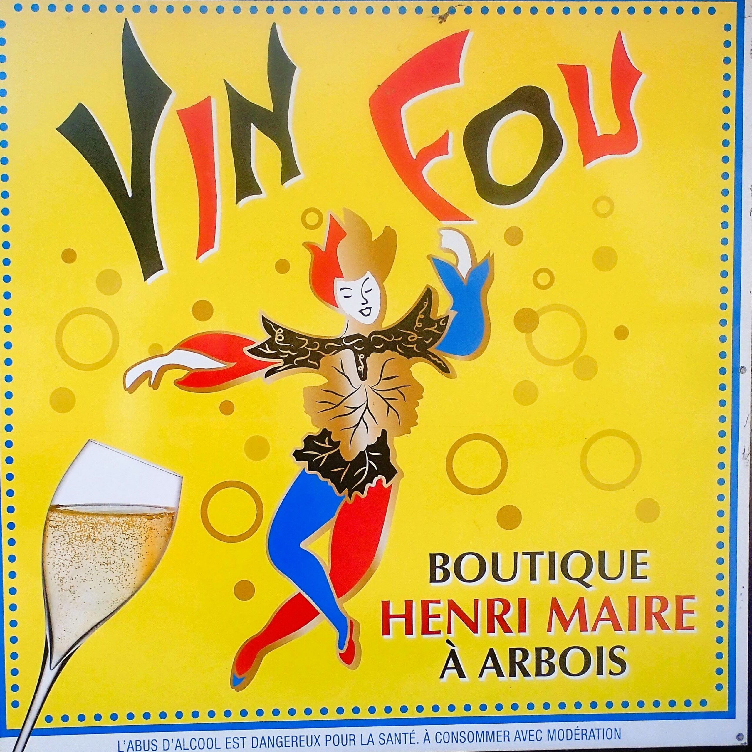 The Henri Maire Vin Fou signs are a feature billboard in every town for about a 200-km radius of Arbois.