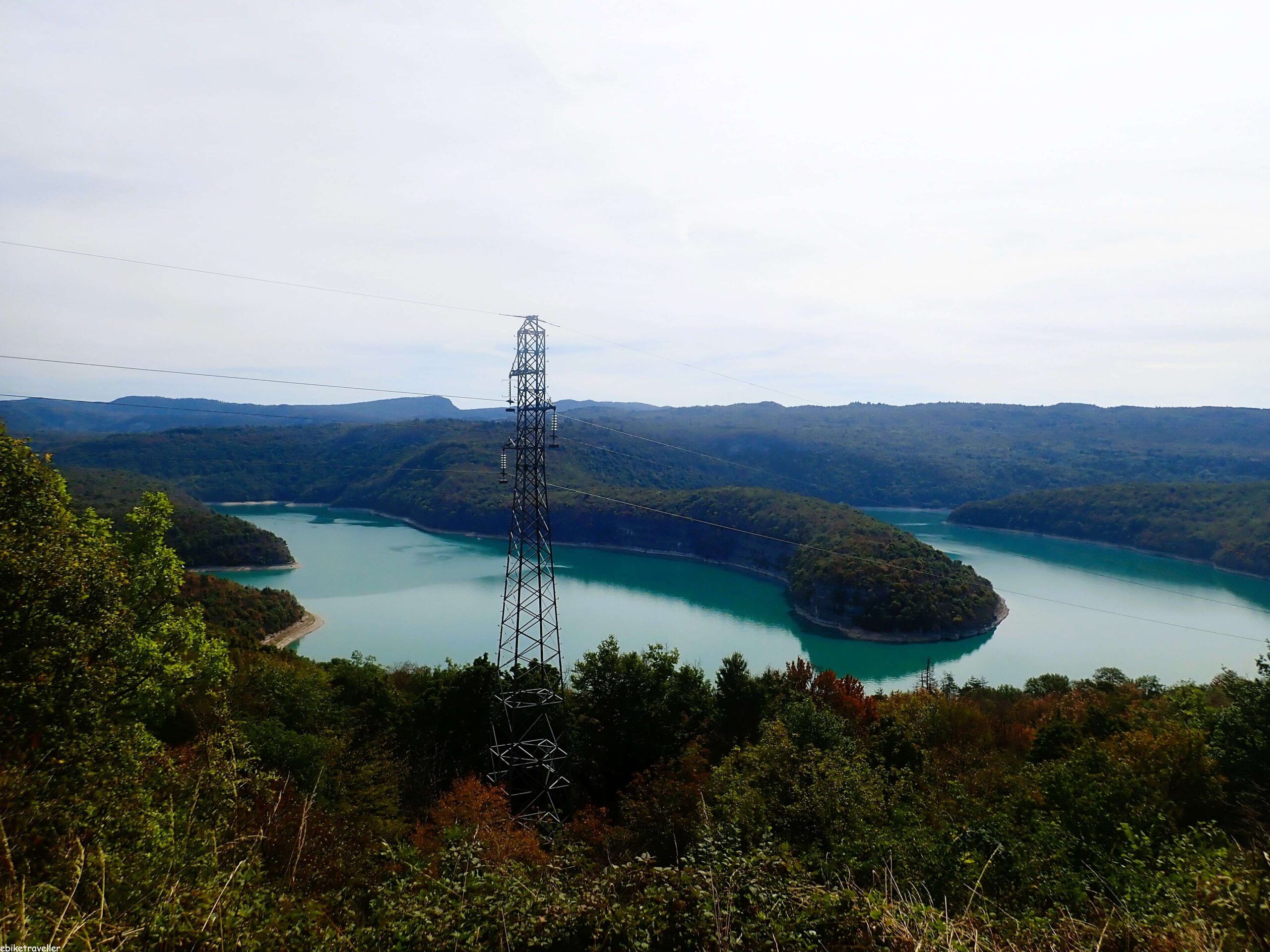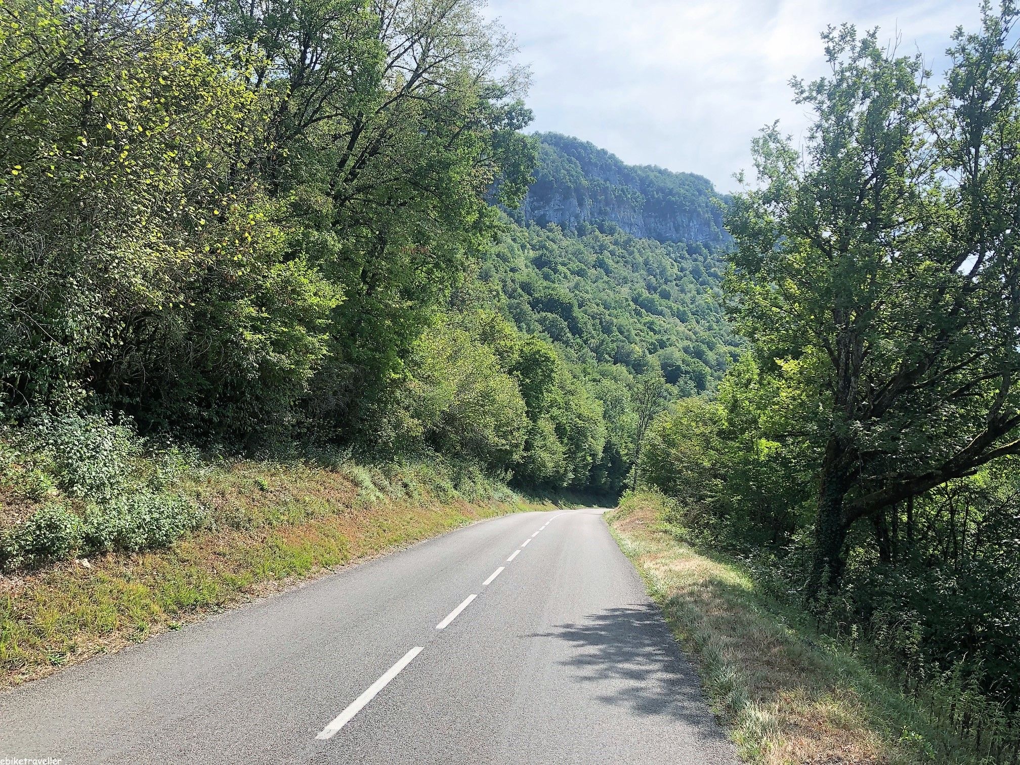 For most of the day I was following the River Ain through its narrow gorge and alongside its reservoir on a main tourist road but unfortunately a ‘deviation’ downstream of the dam at the Pont de Lect sur L’Ain made me have to backtrack north and up out of the gorge again – 12 km at 6%, then straightaway 8 km at 5% followed by another 5 km at 8% made for 25 km of tough climbing.
