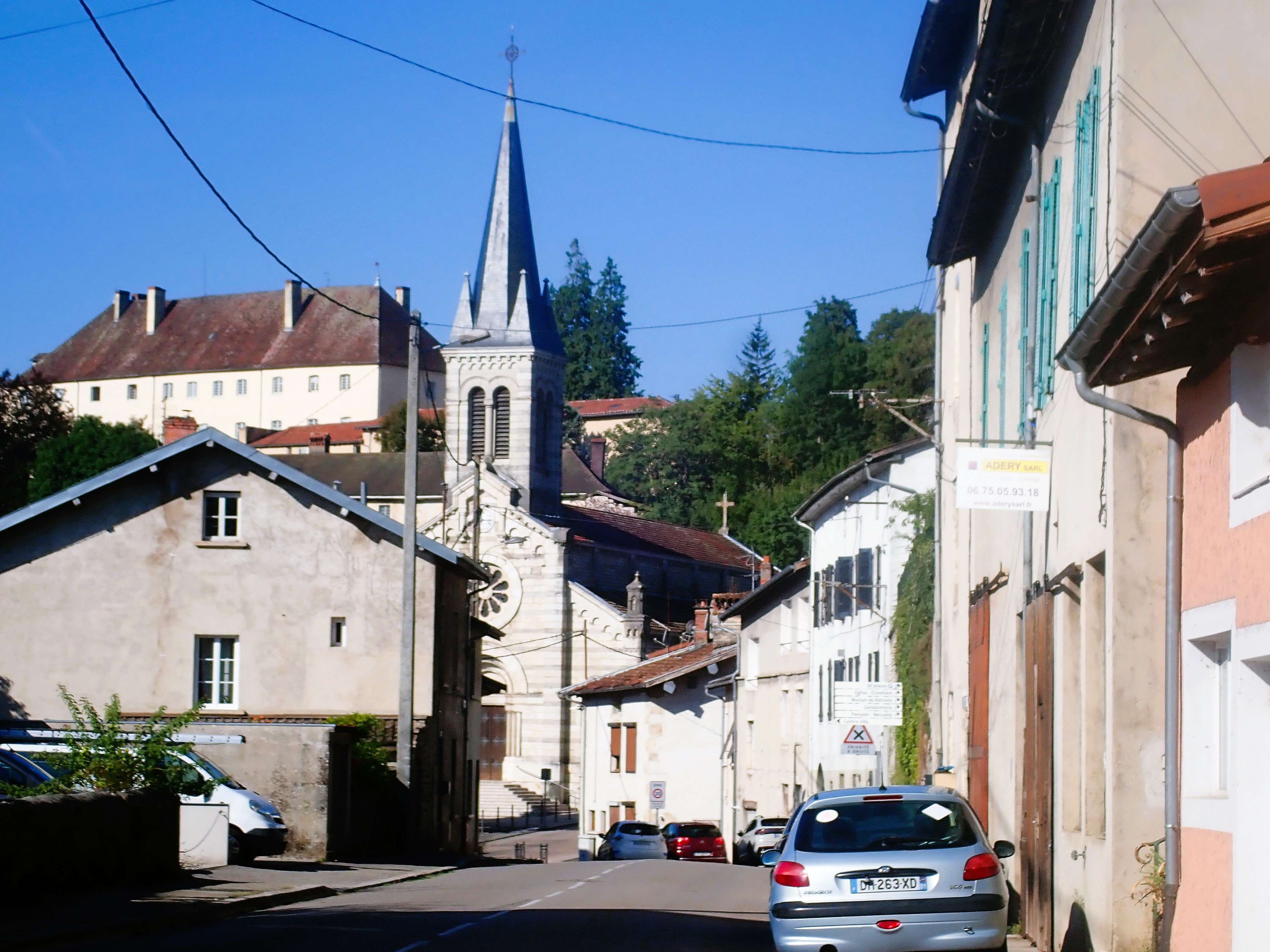 The going was very hilly then through the Jura Massif, and I snuck into a campground at Poligny to recharge the batteries for 40 minutes, and then just made it the 25 km further on along the flat and straight but very busy D1083 road to Lons-Le-Saunier.