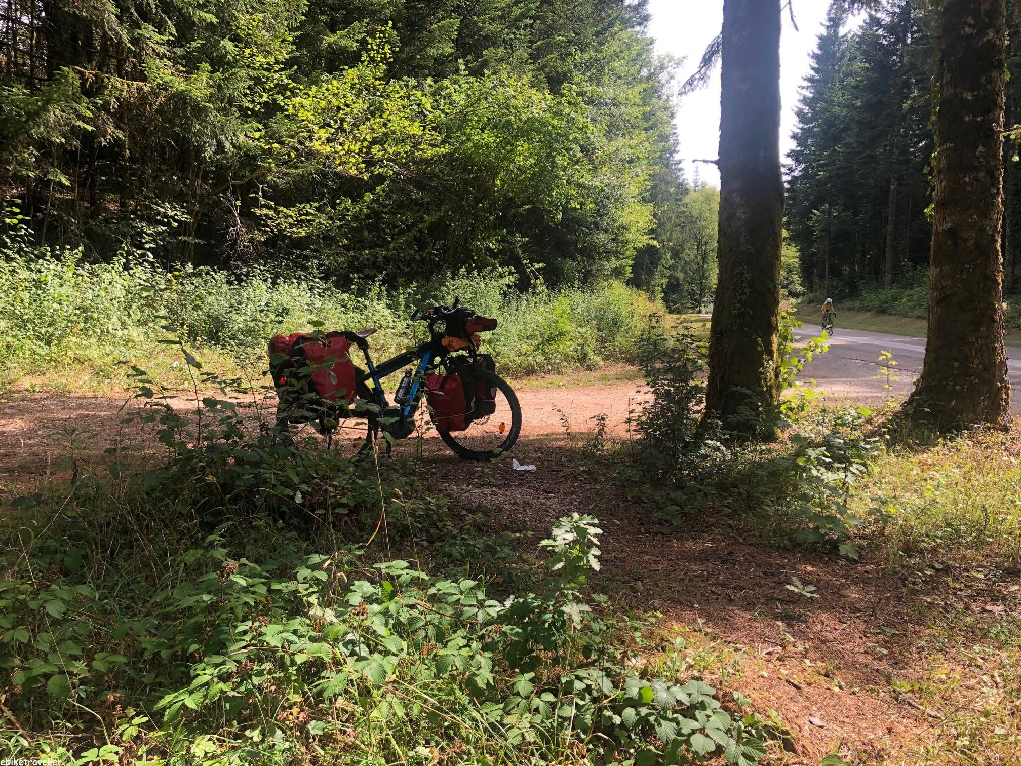 First, there was 40 kilometres through rolling green countryside on quiet back roads to the Doubs River. But after only 1 kilometre upstream, I left the Doubs and headed into the Forest of Chaux along almost impossible dark forest pathways strewn with broken branches and with steep inclines, as well as along well-made dirt logging trails for 30 km to the picturesque town of Arbois.