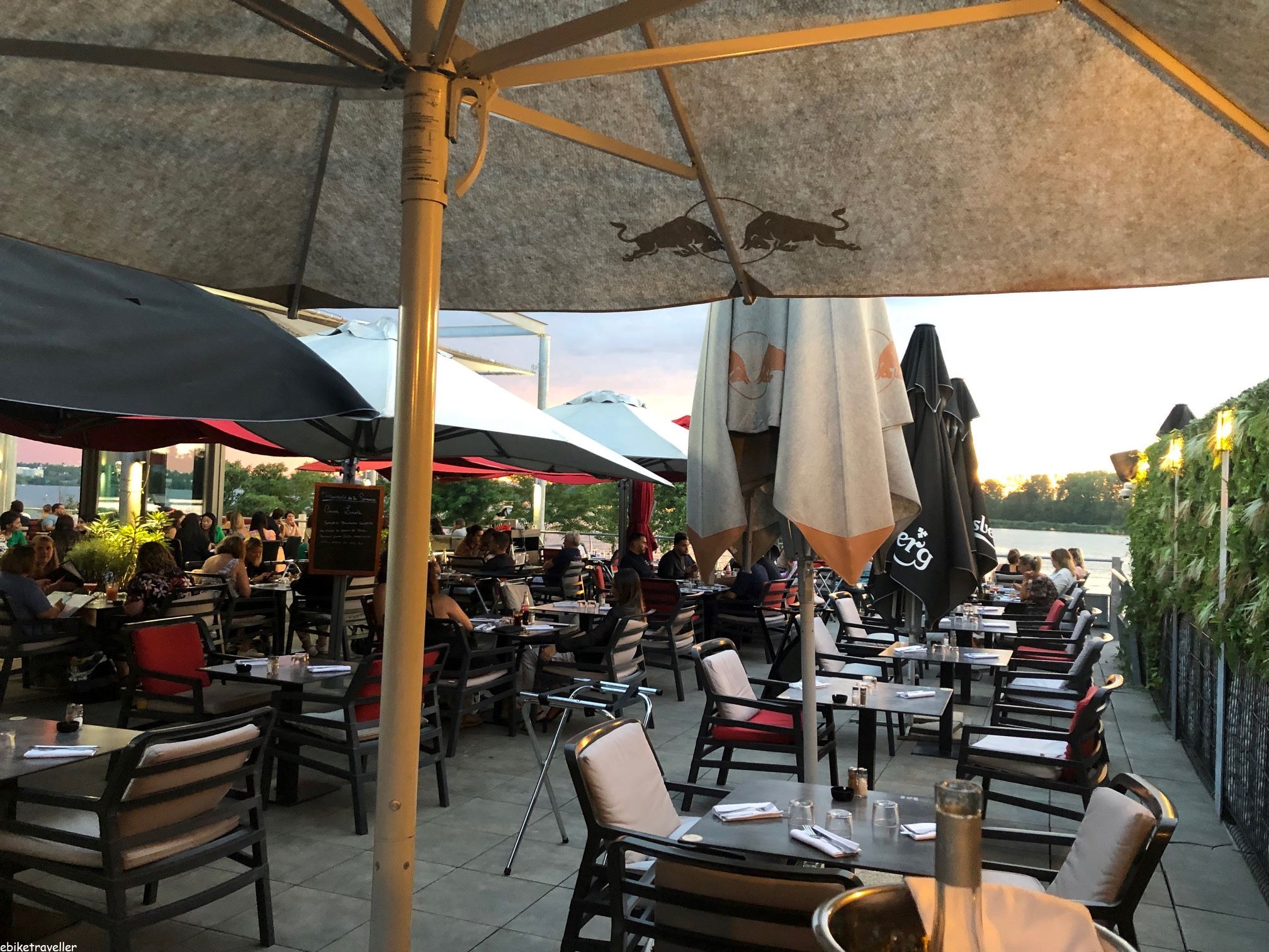 Well, I did go for that early meal, a Poké Bowl and a bottle of Rosé for €57. It was my birthday after all. And even though they only deigned to give me a back seat next to the waiters’ station and well away from the opulent terrace, I did have water glimpses. Cheers!