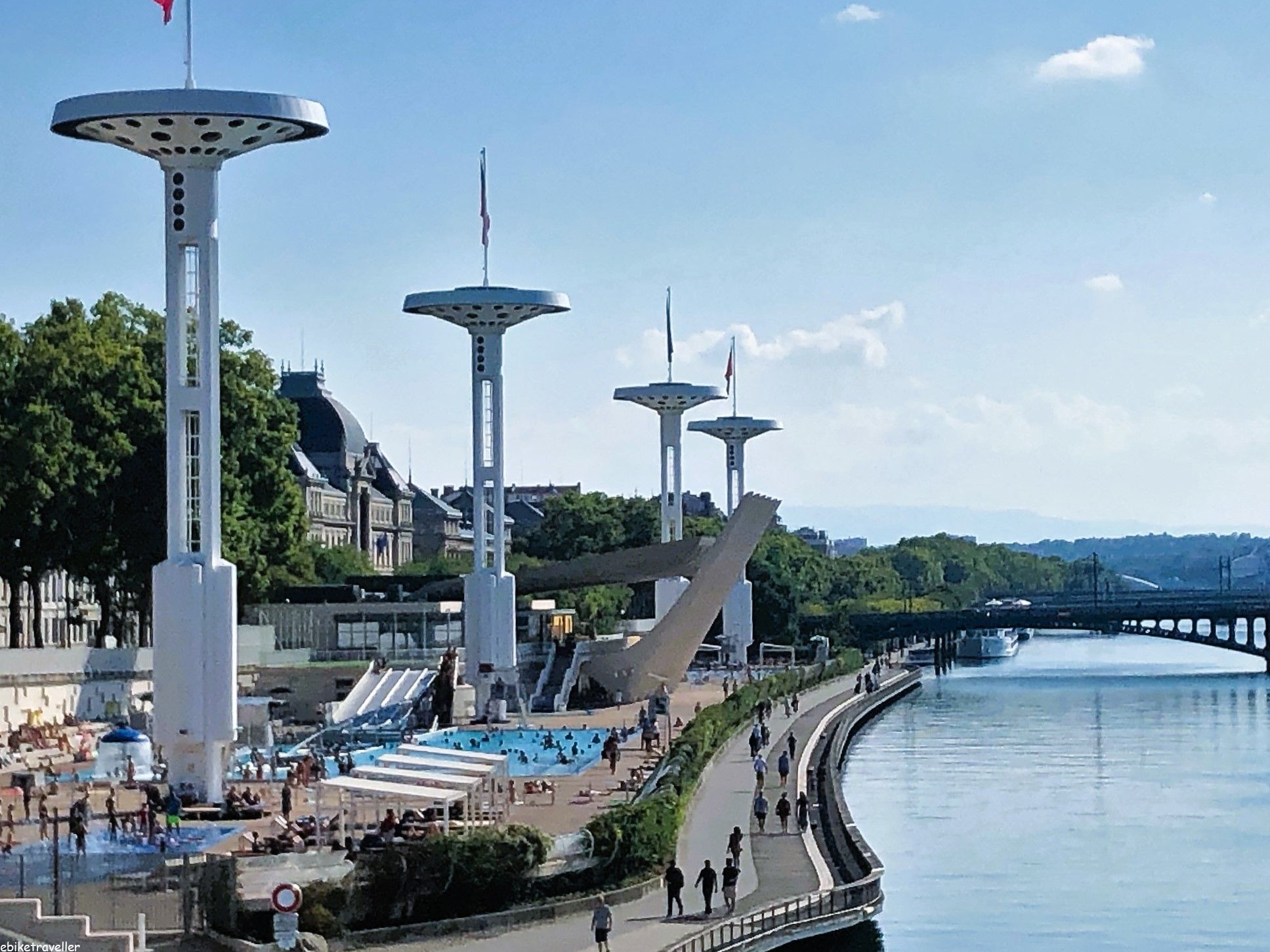 The Ain à Velo route terminates at the confluence of the Rivers Ain and Rhône and after that you’d normally ride on along the Rhône River into Lyon (as I had done 4 months ago but in the opposite direction). But due to my grave concerns about my drive belt’s imminent failure, I thought it prudent to push on to Lyon by the most direct route, and GPSsed myself there via the vast industrial precinct in the east of the city.
