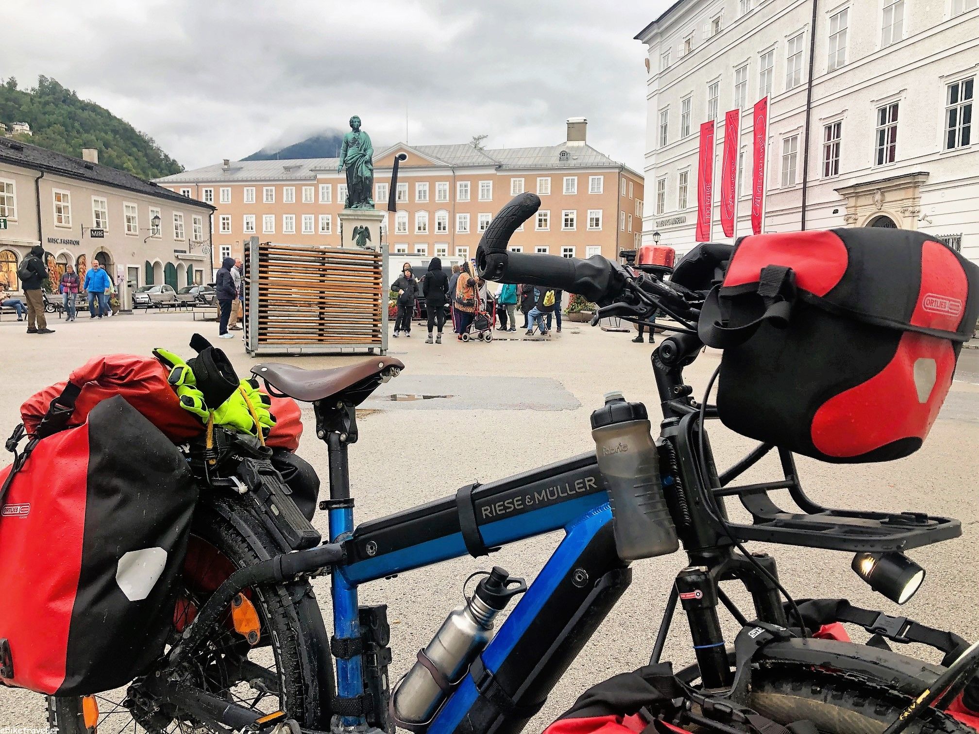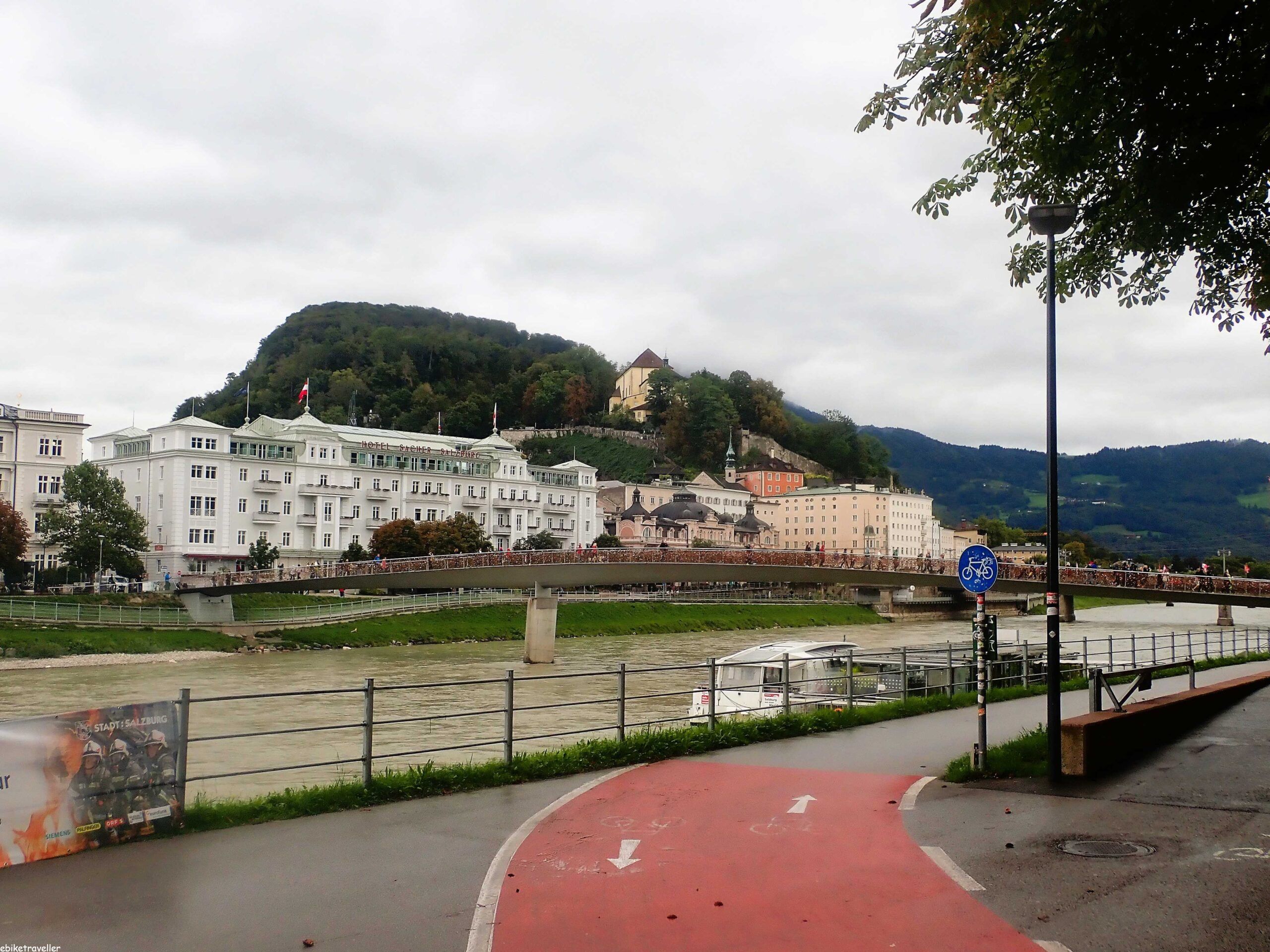 I got away from Camping Vierthaler at 8.05 am to cold (1°C) and wet conditions after packing a wet tent. It had rained most of the night, and I had drizzle to contend with most of the way to Salzburg. It was beautiful scenery for the first 30-odd kilometres going down a narrow alpine canyon, but then it got a bit tedious going through industrial estates, until the pleasant again final 12 kilometres into Salzburg centre on a cyclepath alongside the Salzach River.