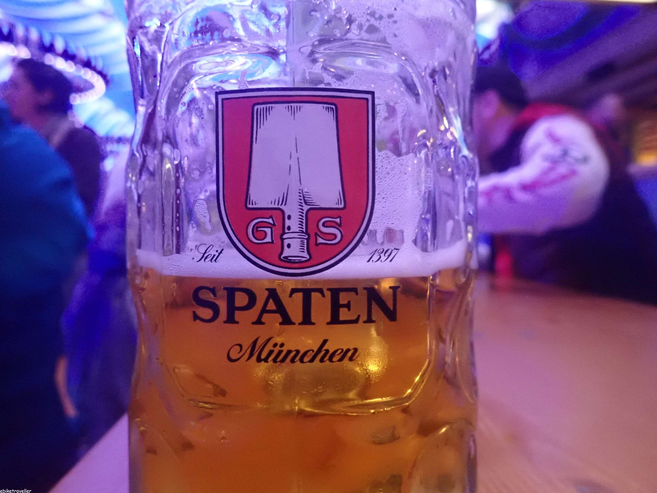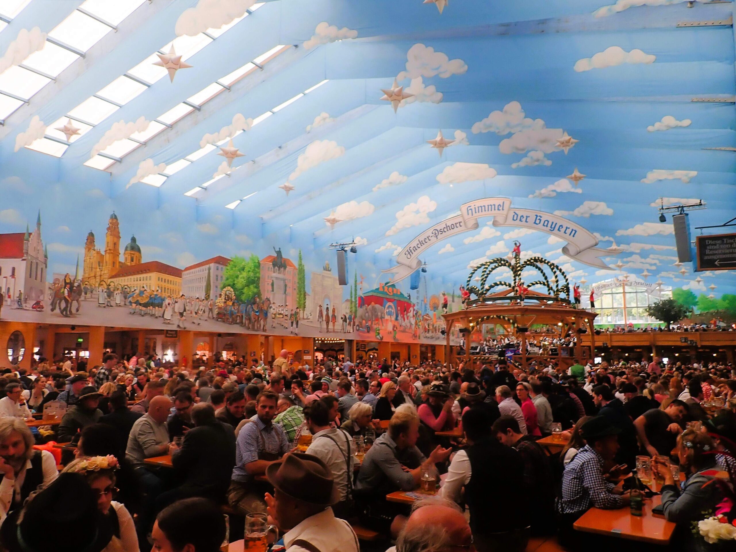 The side-show amusements and food stalls at Oktoberfest are massive, but the real drawcards are the beer halls. There are 17 large ‘tents’ and 21 small ones, with capacities ranging from 4,000 to 10,000 people each! They look like permanent solids structures but are actually erected and dismantled each year just for this festival. Each one has a central stage with live music and lots of buxom wenches running around bringing 1-litre glass jugs of beer to the tables and various local food and snack platters.