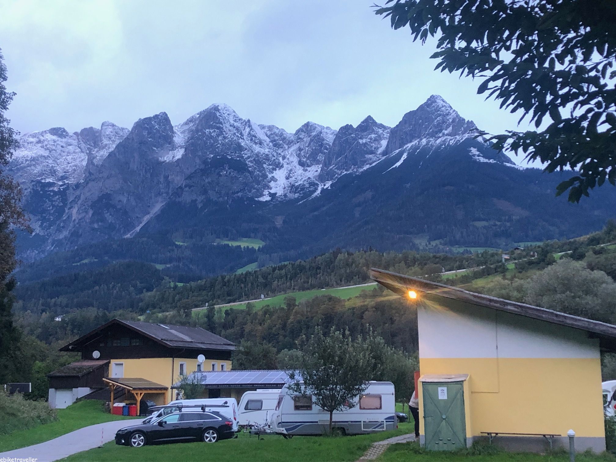 Camping Verthaler in Pfarrverfen, where I pitched my tent for €10, was also right at the end of their season, and the small campsite was almost empty. The woman running it opened up her bar for a little while so we could buy frozen pizzas that she heated up for us, and small bottles of beer that she chilled for us – ‘us’ being myself and 2 other hardy souls. So for €14, I got a greasy supermarket pepperoni pizza and 2 beers and called it dinner. But this campsite was okay in my book, its key attribute being the glorious view of the Tennen Mountains, as you can see by clicking on Tripadvisor’s Camping Vierthaler link (or by looking at the photos below).
