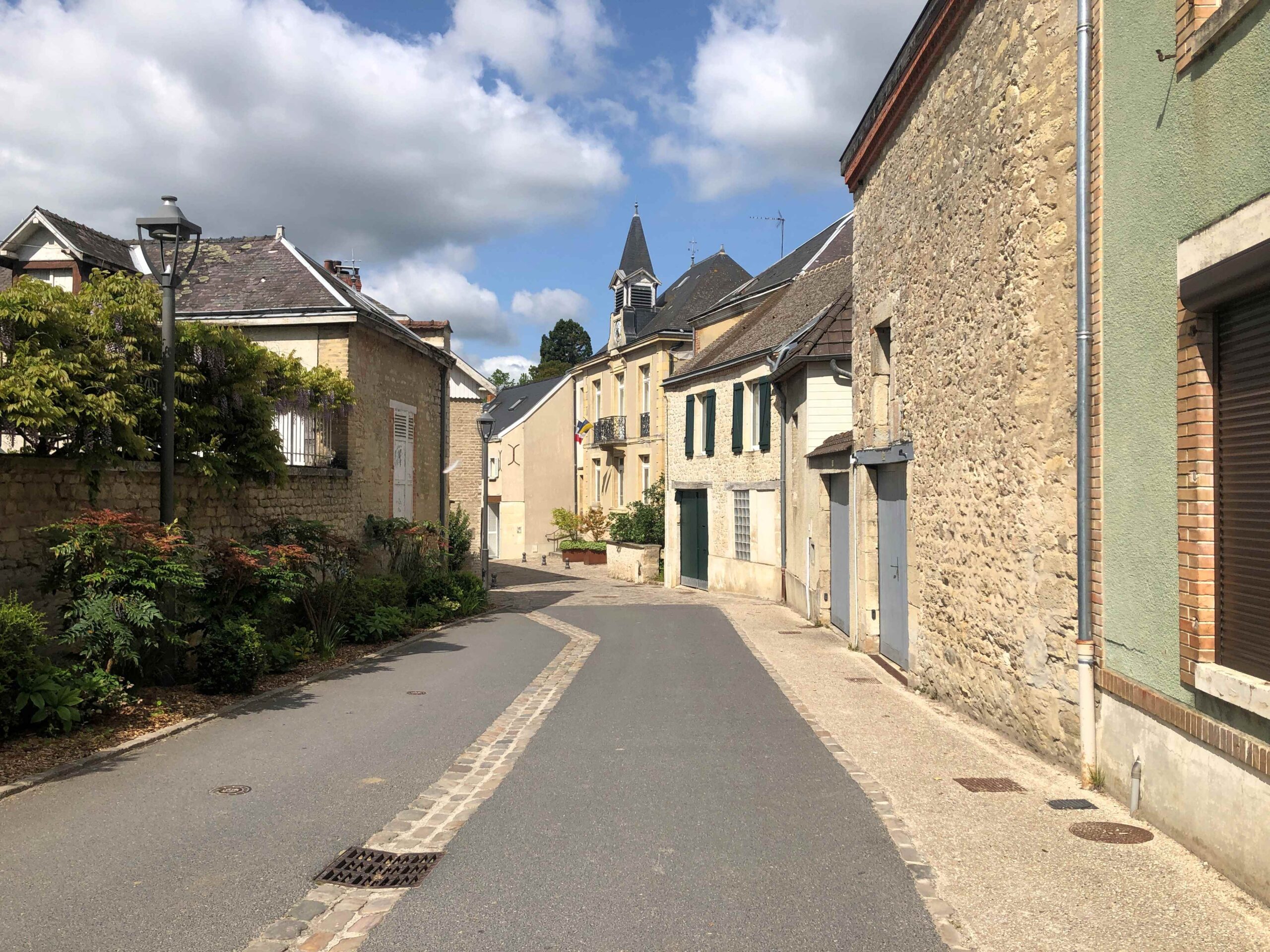 Once I got clear of Reims the going became quite hilly. I passed through kilometer-upon-kilometer of vineyards in the Aisne Valley – not the main part of the Champagne grape growing area by any means, which seems to be more to the south and east of Reims, but I guess they’re cashing-in on the famous appellation by extending the growing area in all directions. A lot of the vineyards looked pretty recent cultivations to me. The names of the couple of wineries I passed meant nothing to me but I got the impression most of the vineyards along here sell to the bigger more famous houses further away. It was too early in the season to see any bustling transportation of grapes to-and-fro, but the infrastructure was definitely there for it.