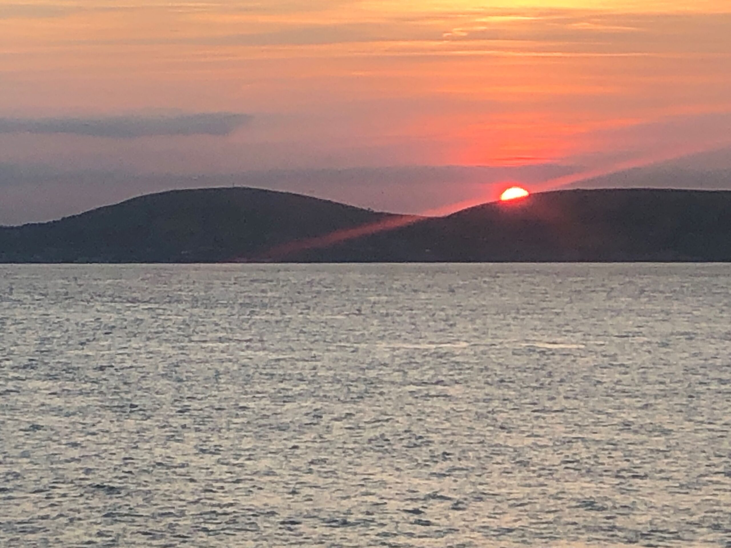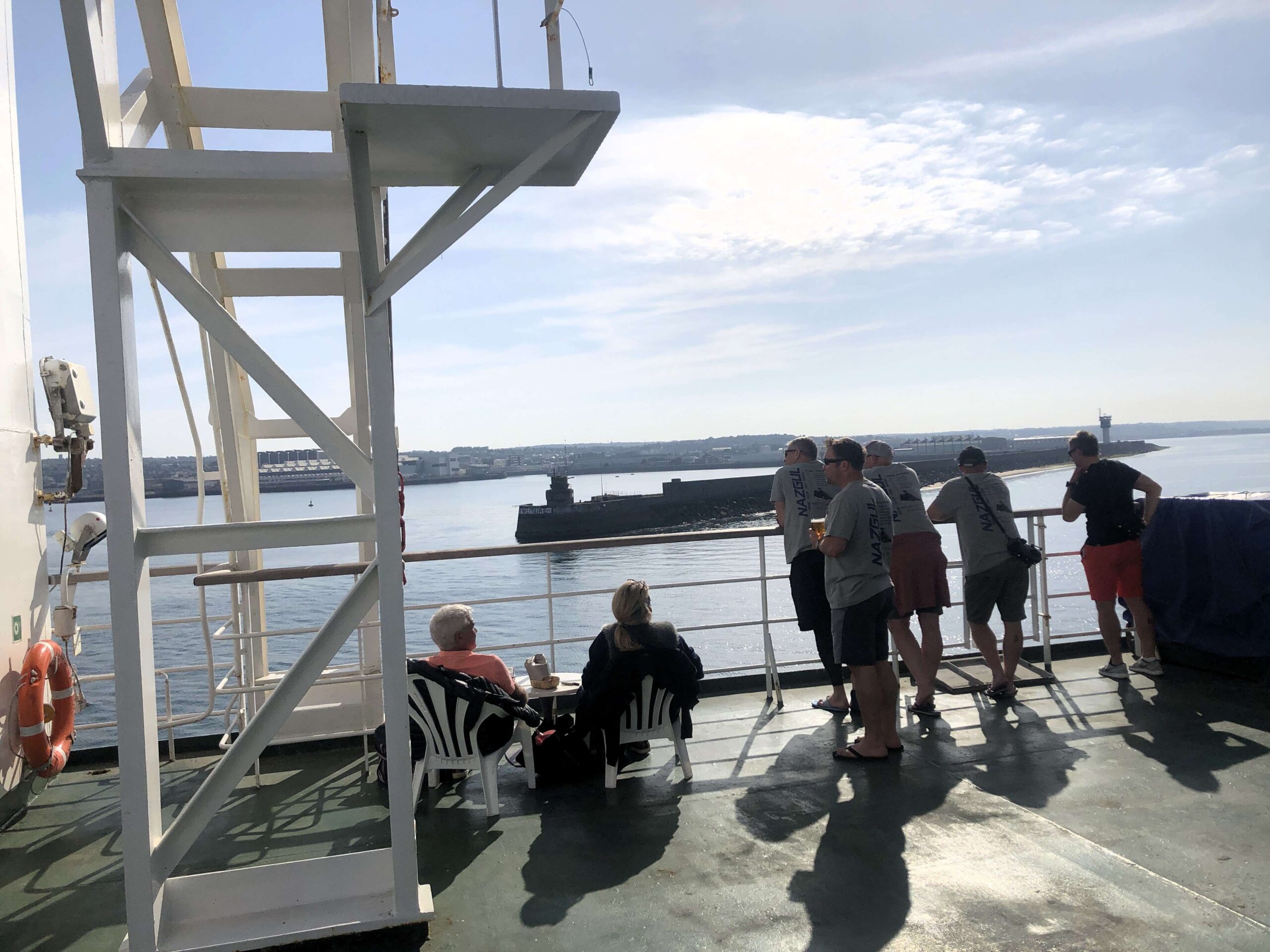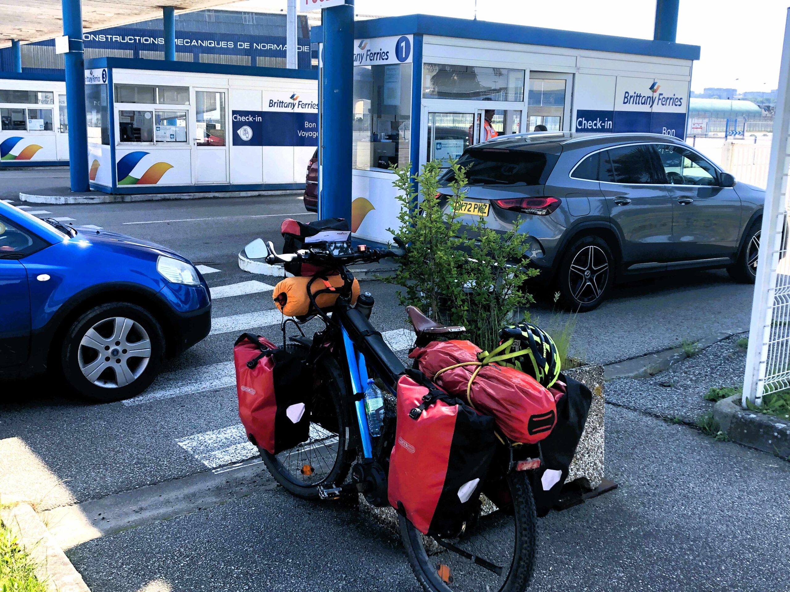 I checked in at the Brittany Ferries ticketing office on the quay and discovered they had a ferry leaving for Poole in England at 18:15 h, so without further ado I bought a ticket for €89 and hung around, first in queue, for 7-hours to board for the 4½-hour trip. It was ok waiting, chatting away to newcomers as they arrived throughout the day – a couple of bikers, plus an 88-year-old Welsh guy and his wife who were doing their annual tour in the tiny 1980s vintage campervan – so lively and lovely to talk to. Almost last to arrive was a large group of cyclists in matching lycra returning home to the UK after 3 days cycling in Normandy . I’d been the only bicycle passenger up till then.